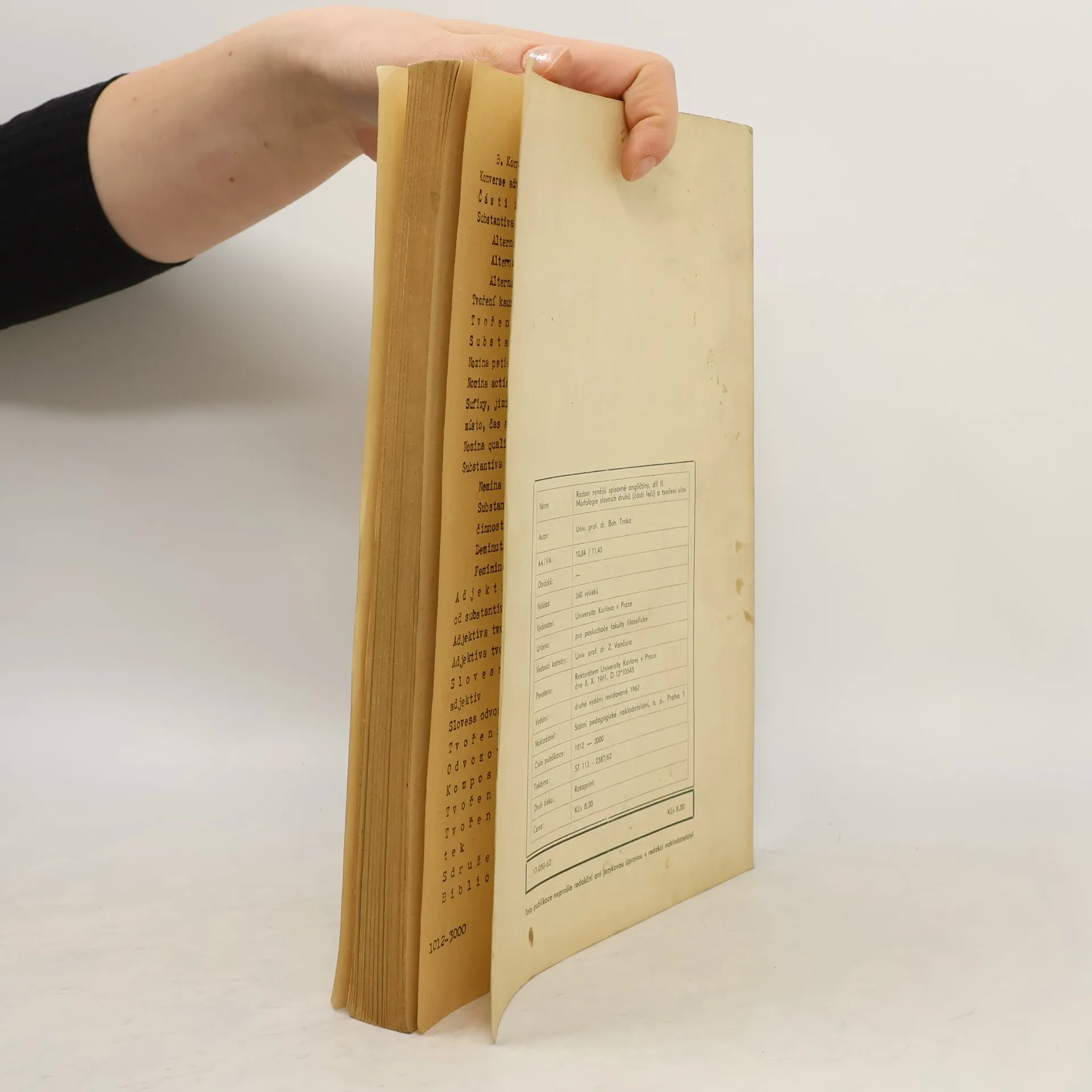 Rozbor nynější spisovné angličtiny, díl II: Morfologie slovních druhů (části řeči) a tvoření slov, Bohumil Trnka