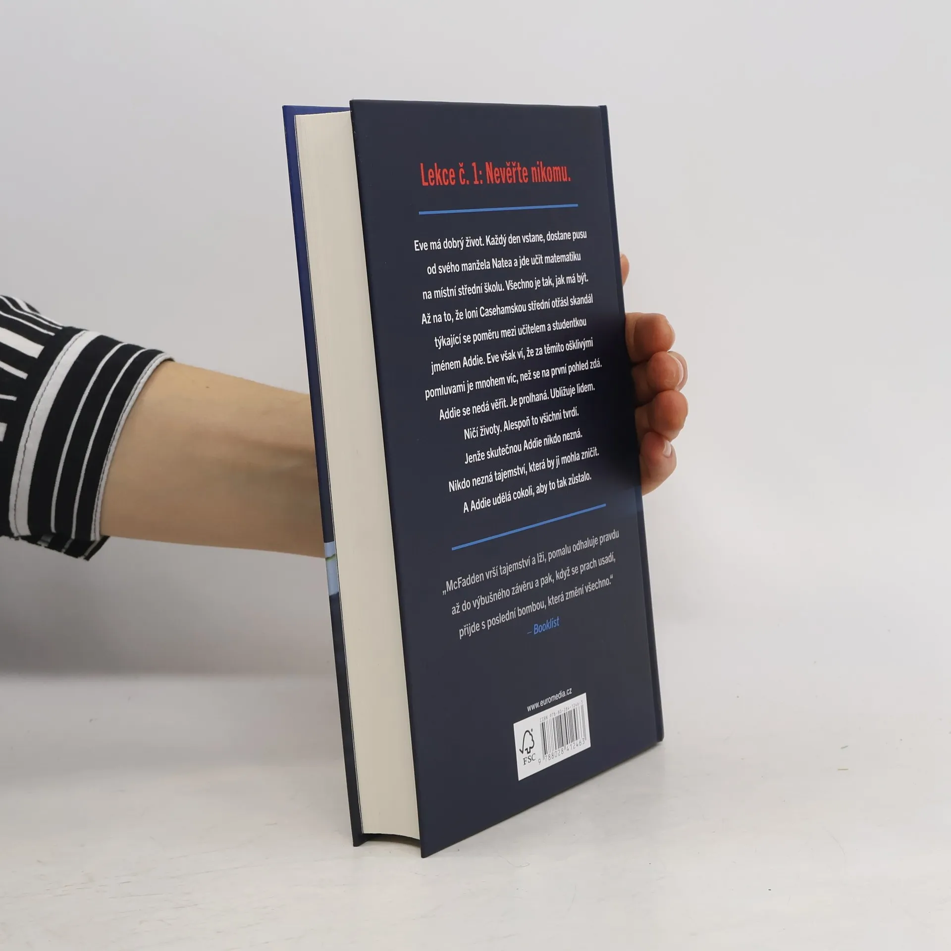 Eve má dobrý život. Každý den vstane, dostane pusu od svého manžela Natea a jde učit matematiku na místní střední školu. Všechno je tak, jak má být. Až na to, že loni casehamskou střední otřásl skandál týkající se poměru mezi učitelem a studentkou jménem Addie. Eve však ví, že za těmito ošklivými pomluvami je mnohem víc, než se na první pohled zdá. Addie se nedá věřit. Je prolhaná. Ubližuje lidem. Ničí životy. Alespoň to všichni tvrdí. Jenže skutečnou Addie nikdo nezná. Nikdo nezná tajemství, která by ji mohla zničit. A Addie udělá cokoli, aby to tak zůstalo.