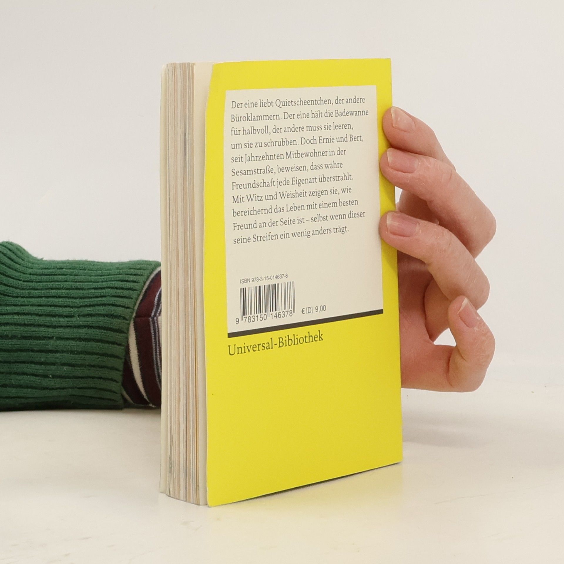 Ernie oder Bert? Das ist die Frage! Der eine liebt Witze und Quietscheentchen, der andere Büroklammern und Tauben. Der eine hält die Badewanne für halbvoll, der andere muss sie leeren, um sie zu schrubben. Aber beide sind sich einig, dass nichts über einen Freund an der Seite geht – auch wenn dieser seine Streifen ein wenig anders trägt. Es gibt wahrlich keine besseren Experten für das Zusammenleben als Ernie und Bert, die Kultfiguren aus der Sesamstraße. Das charmante Buch ist das perfekte Geschenk für beste Freunde und WG-Mitbewohner: Mit farbigen Illustrationen und einem Nachwort der Puppenspieler Carsten Haffke und Martin Paas. Die Sesamstraße als Literaturklassiker: Ernie und Bert werden Teil von Reclams Universal-Bibliothek. Zum Verschenken oder Selberlesen: Mit den Weisheiten von Ernie und Bert nimmt man das Leben mit Humor. Das Glück der Freundschaft Herzerwärmende Tipps von den besten Freunden der Sesamstraße – ein unterhaltsames Geschenkbuch für alle, die wahre Freundschaft schätzen und eine entspannte und fröhliche Zeit miteinander verbringen wollen.