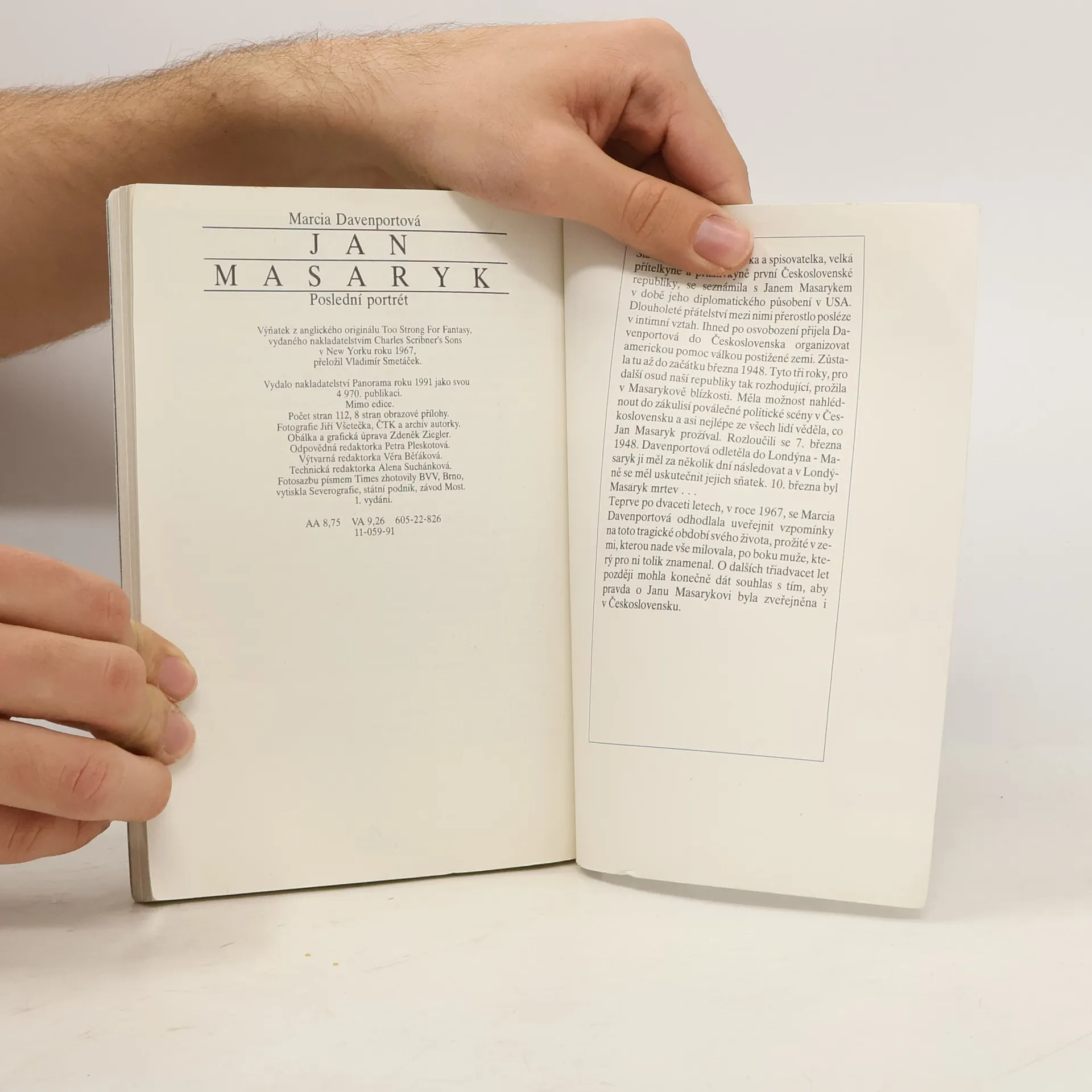 Marcia Davenportová měla možnost nahlédnout do zákulisí poválečné politické scény v Československu a asi nejlépe ze všech lidí věděla, co Jan Masaryk prožíval... ....Teprve v roce 1967 se Marcia Davenportová odhodlala uveřejnit vzpomínky na tragické období svého života,v zemi kterou milovala,po boku muže,který pro ni tolik znamenal. O dalších třiadvacet let později mohla konečně dát souhlas s tím,aby pravda o Janu Masarykovi byla zveřejněna i v Československu.