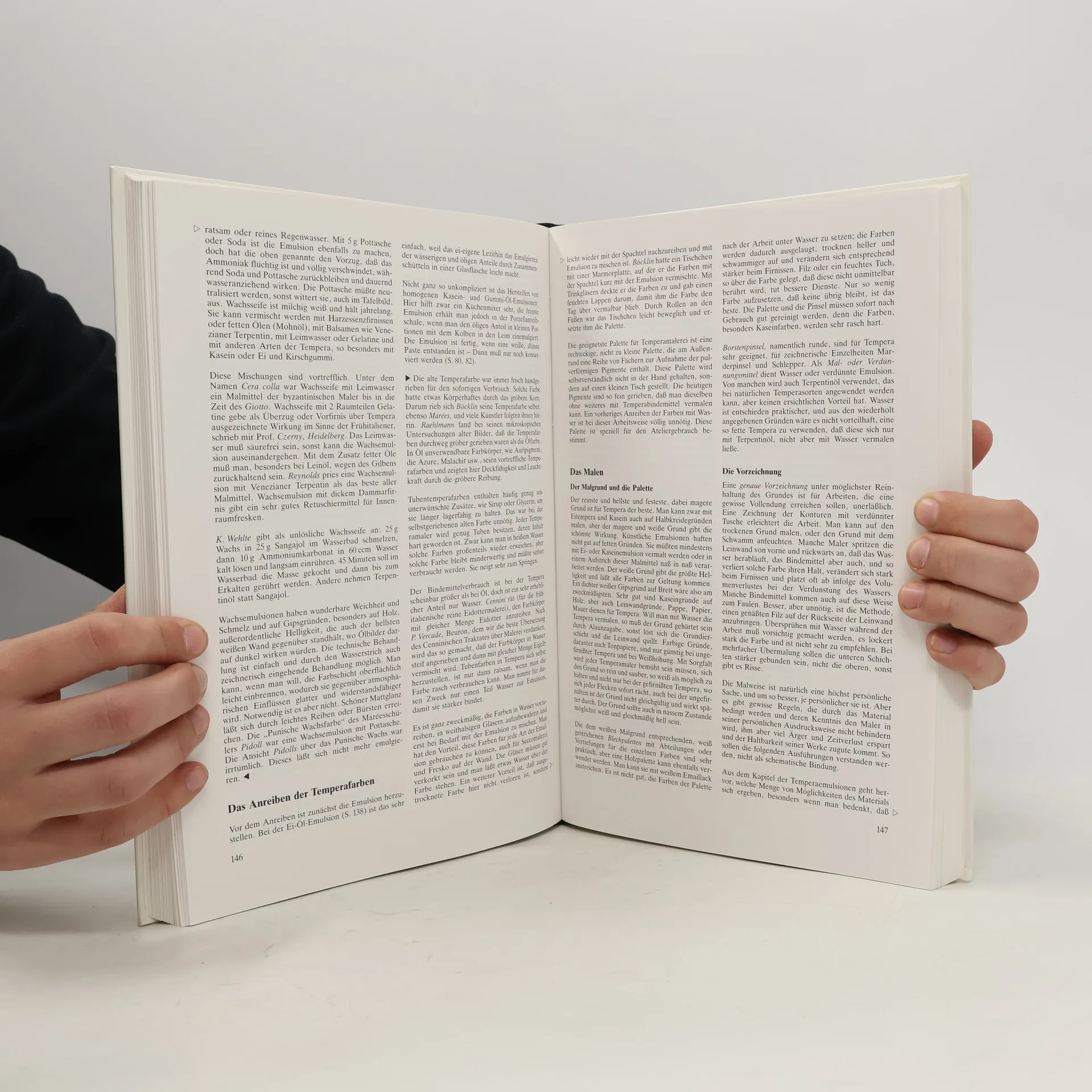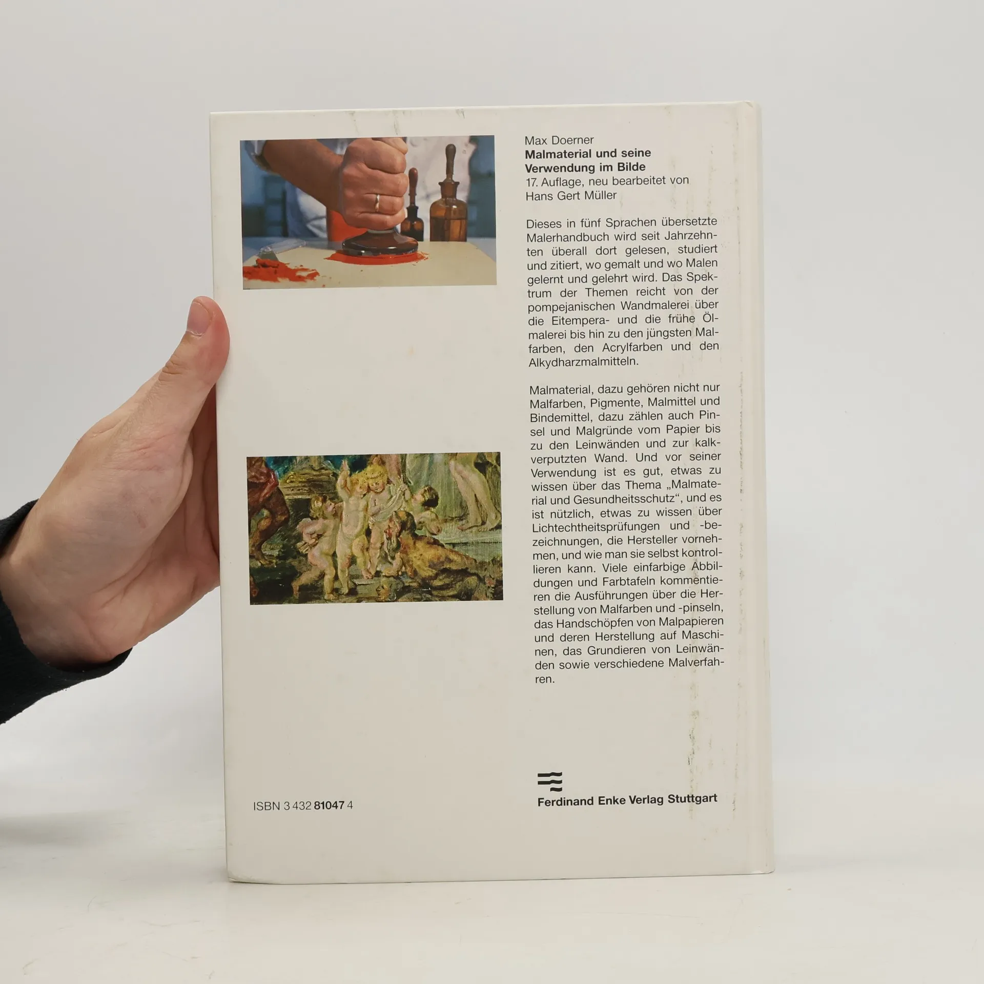 Dieses Standardwerk zur Maltechnik wird als das Fach- und Lehrbuch für Maler seit Jahrzehnten von Experten kontinuierlich betreut und neu bearbeitet. Es ist in mehrere Sprachen übersetzt und stets dort anzutreffen, wo Malverfahren gelehrt und gelernt werden oder wo einfach nur gemalt wird. Neben klassischen Malmaterialien sind die neuesten Malfarben, Pigmente, Malmittel und Bindemittel nach Herkunft und Geschichte aufgeführt, ebenso die Malgeräte und Malgründe, wie Papiere, Leinwand, Holz oder auch kalkverputzte Wände. Spezialthemen wie Gesundheitsschutz, Lichtechtheitsprüfung, Wollskala und verwandte Bezeichnungen, werden in eigenen Abschnitten behandelt. Die Palette der Themen erstreckt sich von den antiken Maltechniken, der Temperamalerei des Mittelalters und der frühen Ölmalerei bis hin zu den jüngsten Malfarben, den Acrylfarben und Alkydharzmalmitteln. Ein erklärender Anhang mit weiterführenden Literaturangaben, Farbtafeln und mehr als 250 Abbildungen veranschaulichen die Ausführungen über die Verwendung und Herstellung von Malfarben, das Grundieren von Leinwänden, die Fabrikation von Pinseln, die manuelle und industrielle Erzeugung von Malpapieren sowie generell die Theorie und Praxis verschiedener Malverfahren.