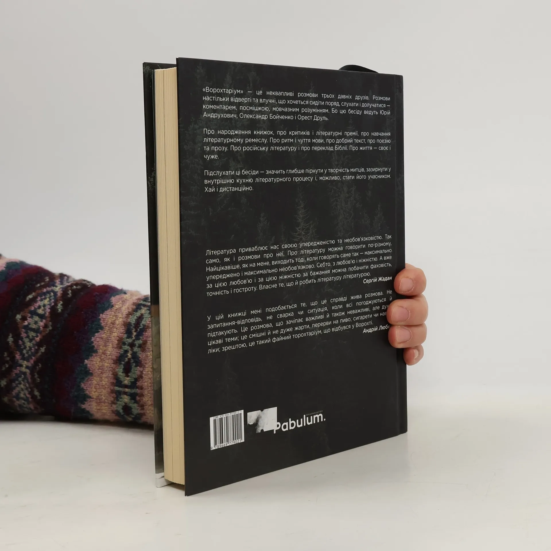 «Ворохтаріум» — це неквапливі розмови трьох давніх друзів. Розмови настільки відверті та влучні, що хочеться сидіти поряд, слухати і долучатися — коментарем, посмішкою, мовчазним розумінням. Бо цю бесіду ведуть Юрій Андрухович, Олександр Бойченко та Орест Друль.Про народження книжок, про критиків і літературні премії, про навчання літературному ремеслу. Про ритм і чуття мови, про добрий текст, про поезію та прозу. Про російську літературу і про переклад Біблії. Про життя — своє і чуже.Підслухати ці бесіди — значить глибше пірнути у творчість митців, зазирнути у внутрішню кухню літературного процесу і, можливо, стати його учасником. Хай і дистанційно.