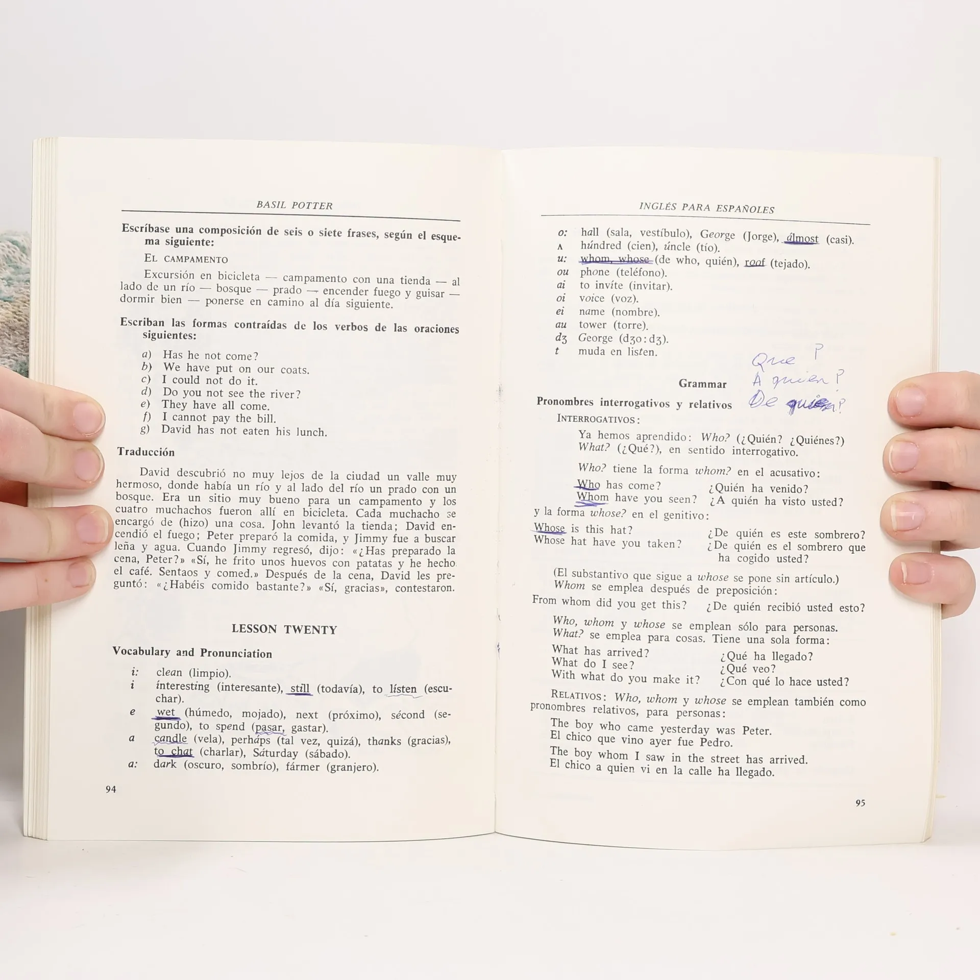 Basil Potter estudió en Bedford y en la Universidad de Oxford. Fue profesor de lenguas modernas en el King¿s College School, de Londres. Escribió estos libros basándose en su experiencia como profesor de inglés en España a donde fue enviado por el Consejo Británico. Este libro es fruto de su experiencia como profesor, y tiene la ventaja de ser un método de clara exposición y eminentemente práctico. Ha trabajado siguiendo el plan psicológico de ir formando de una manera continua los conocimientos del estudiante, basando sus vocabularios en la selección de palabras esenciales para los principiantes. Ha evitado el uso de palabras abstractas y de frases sueltas en las primeras fases del aprendizaje, de forma que solo pueda recordarse lo que es de uso eficaz inmediato. En cuanto a la fonética, ha empleado el sistema internacional simplificado por N.C. Scott de Londres.