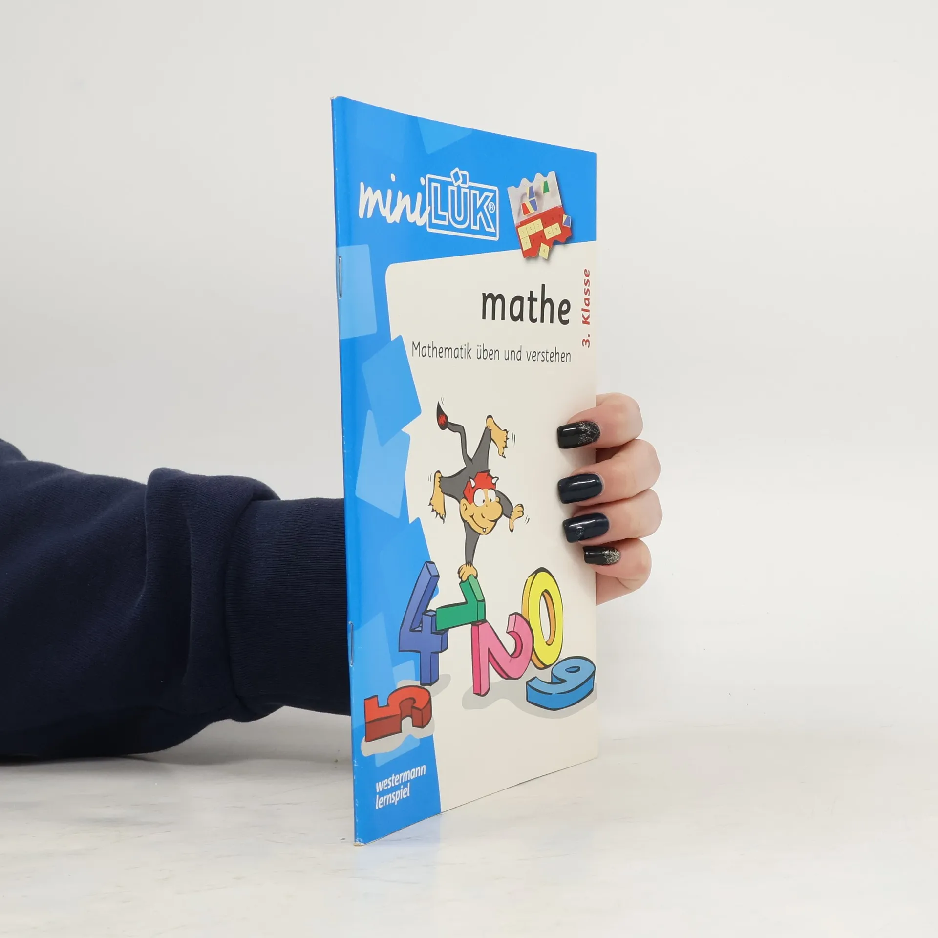 Self-correcting mathematics workbook intended for German 3rd grade. Topics include numbers to 1000, number line, addition and subtraction to 1000, geometry (plane and solid), German money, metric measurement, time. Some word problems.