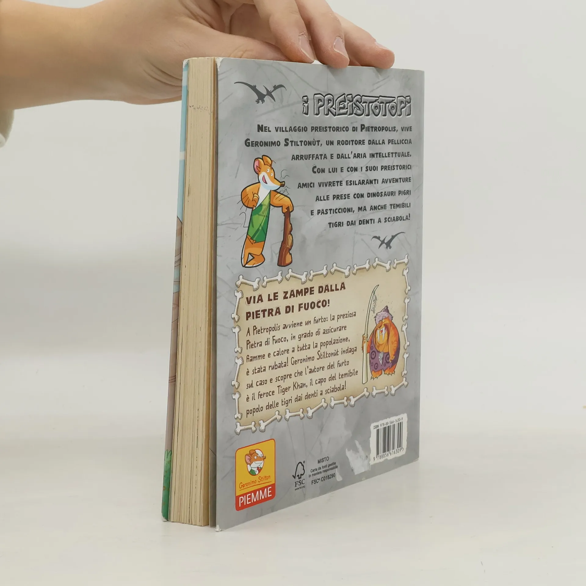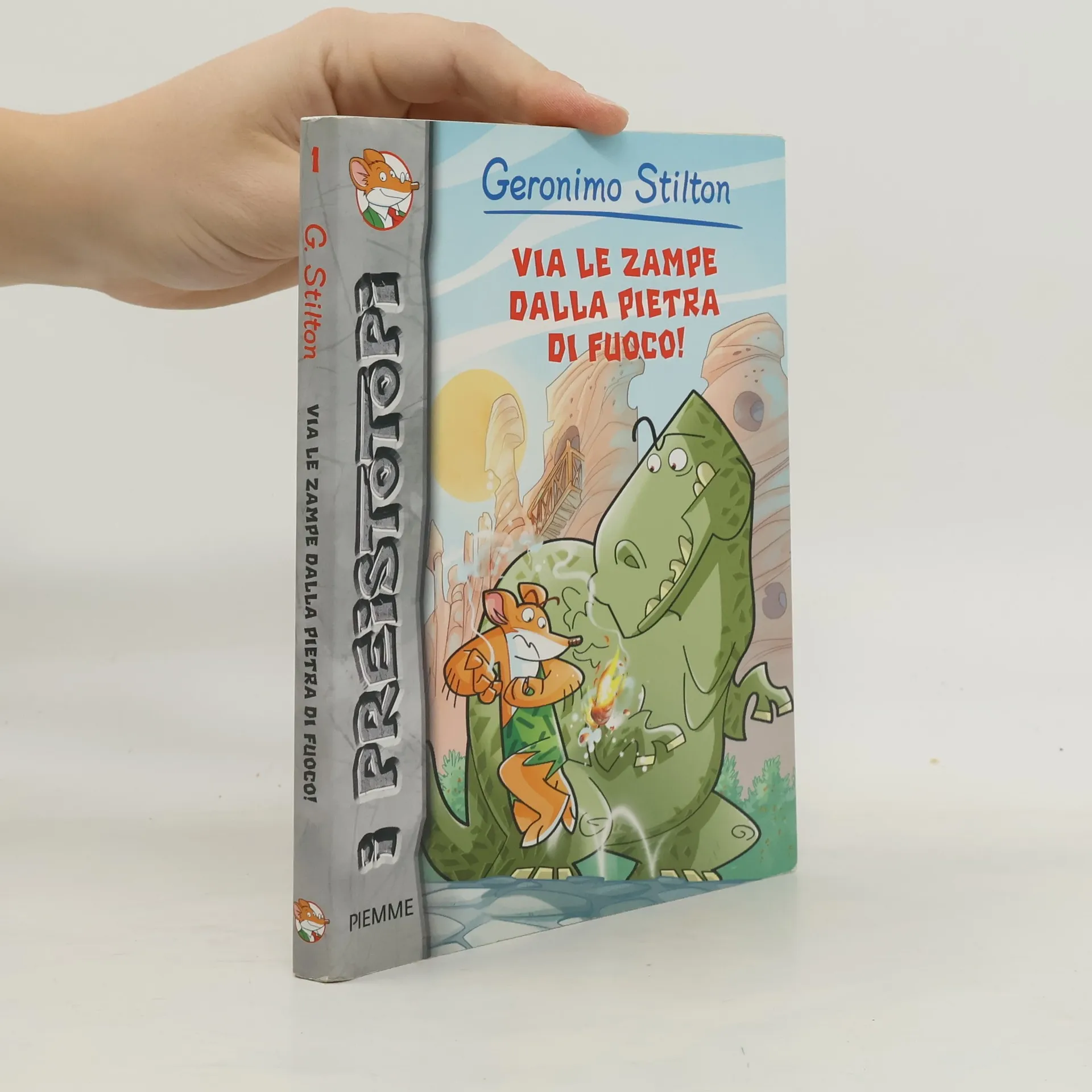 This NEW Geronimo Stilton series spin-off is set in the Stone Age! Who is Geronimo Stiltonoot? He is a cavemouse -- Geronimo Stilton's ancient ancestor. He runs the stone newspaper in the prehistoric village of Old Mouse City. From dealing with dinosaurs to dodging meteorites, his life in the Stone Age is full of adventure! THE STONE OF FIRE Old Mouse City is in an uproar. The most precious artifact in the mouseum -- the Stone of Fire -- has been stolen! Geronimo Stiltonoot and his cavemouse friend Hercule Poirat are on the case. It's up to them to retrieve the stone from the ferocious Tiger Khan and his band of fearsome felines!