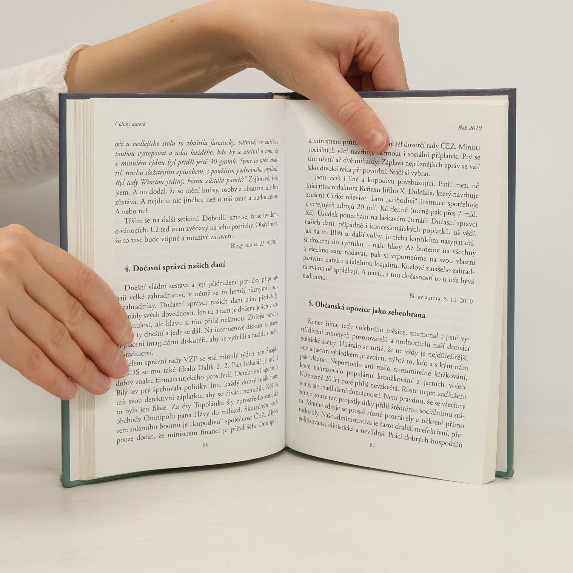 Obsáhlý rozhovor Petra Havlíka s publicistou Petrem Žantovským. Výběr politických glos a článků Petra Havlíka z let 2010 a 2011. Knihu provázejí i originální ilustrace Miroslava Kemela.
