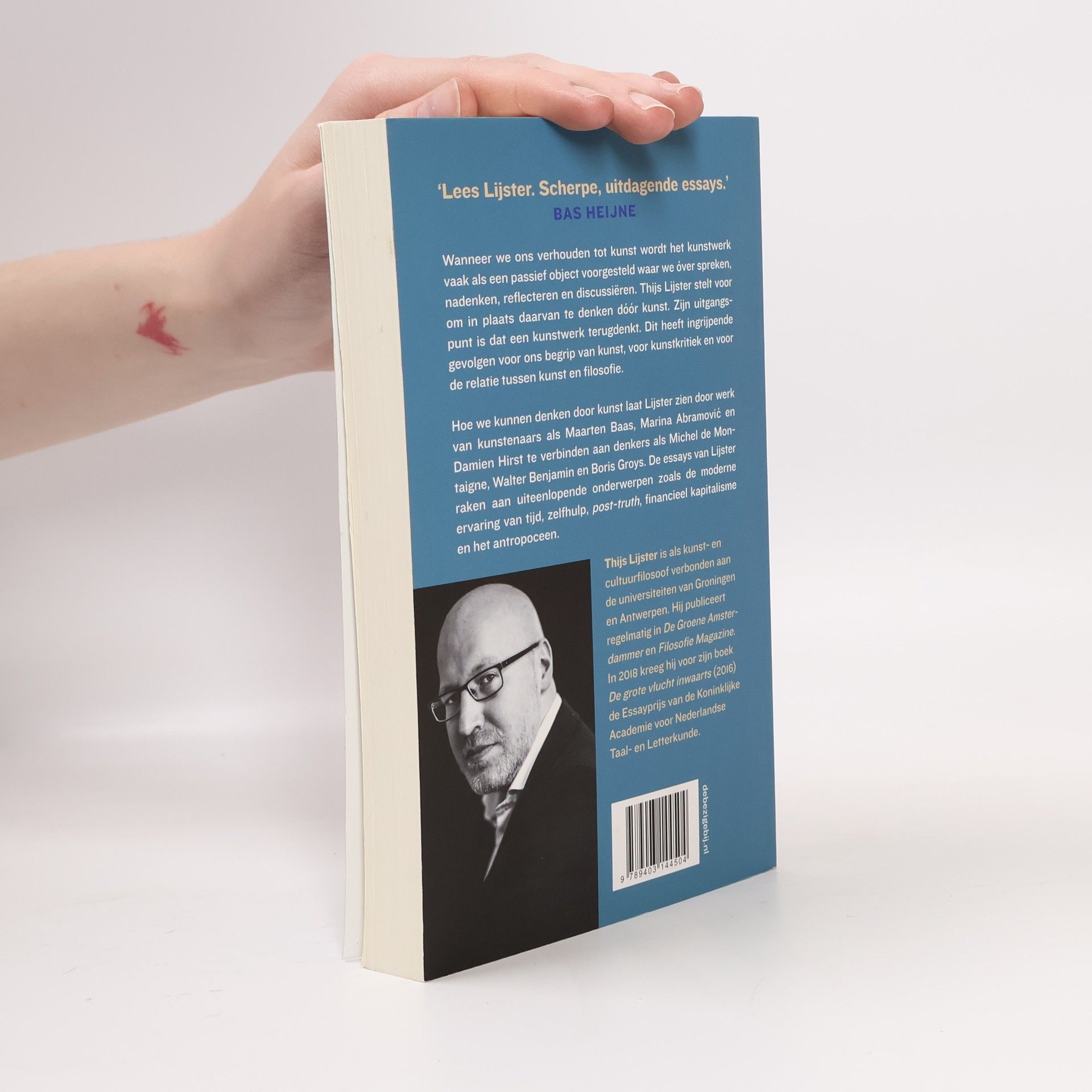 Wanneer we ons verhouden tot kunst wordt het kunstwerk vaak als een passief object voorgesteld waar we óver spreken, nadenken, reflecteren en discussiëren. Thijs Lijster stelt voor om in plaats daarvan te denken dóór kunst. Zijn uitgangspunt is dat een kunstwerk terugdenkt. Dit heeft ingrijpende gevolgen voor ons begrip van kunst, voor kunstkritiek en voor de relatie tussen kunst en filosofie.Hoe we kunnen denken door kunst laat Lijster zien door werk van kunstenaars als Maarten Baas, Marina Abramovic en Damien Hirst te verbinden aan denkers als Michel de Montaigne, Walter Benjamin en Boris Groys. De essays van Lijster raken aan uiteenlopende onderwerpen zoals de moderne ervaring van tijd, zelfhulp, post-truth, financieel kapitalisme en het antropoceen.