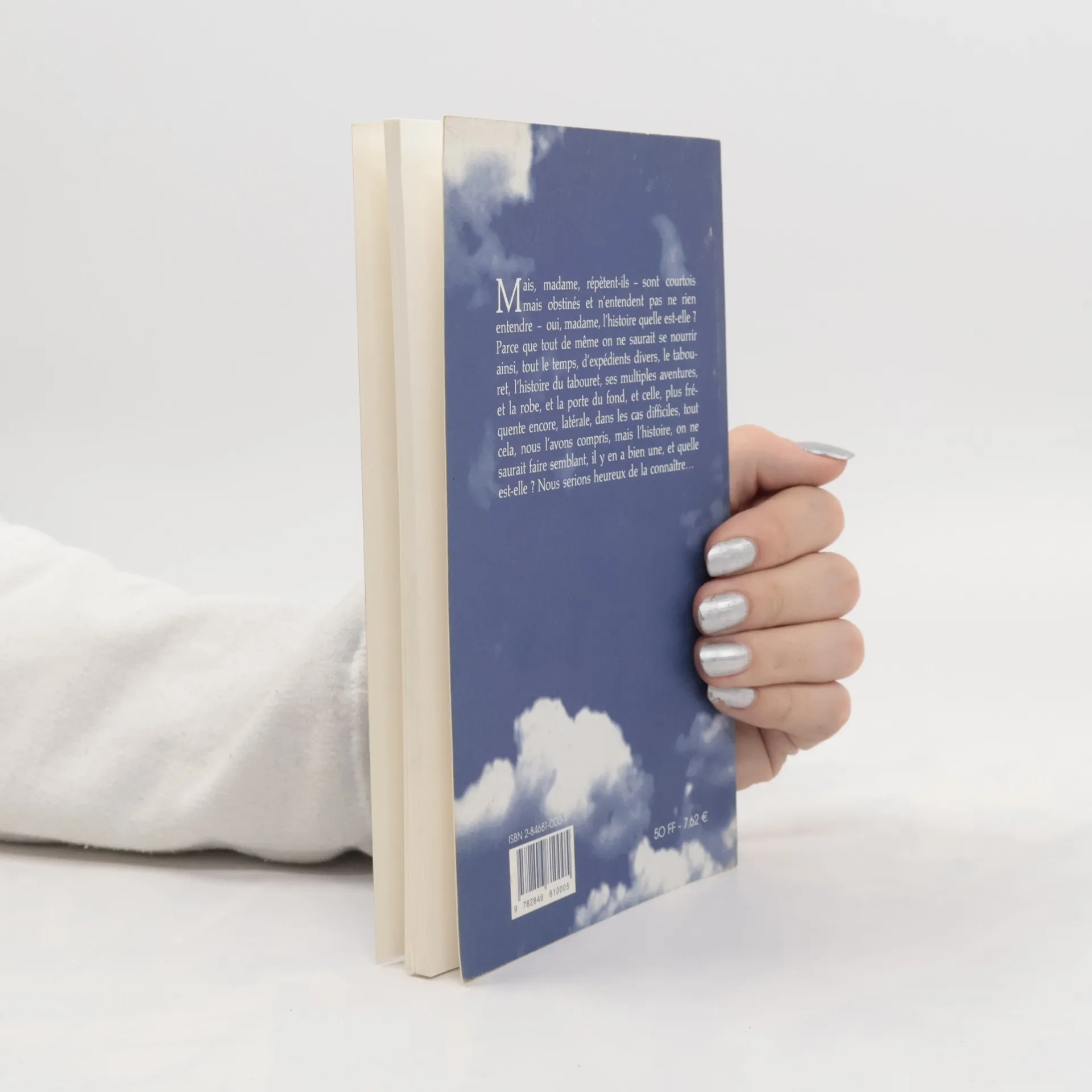 Mais, madame, répètent-ils, ils sont courtois mais obstinés... Oui, madame, l'histoire quelle est-elle? Parce que tout de même on ne saurait se nourrir ainsi, tout le temps, d'expédients divers, le tabouret, l'histoire du tabouret, ses multiples aventures ...