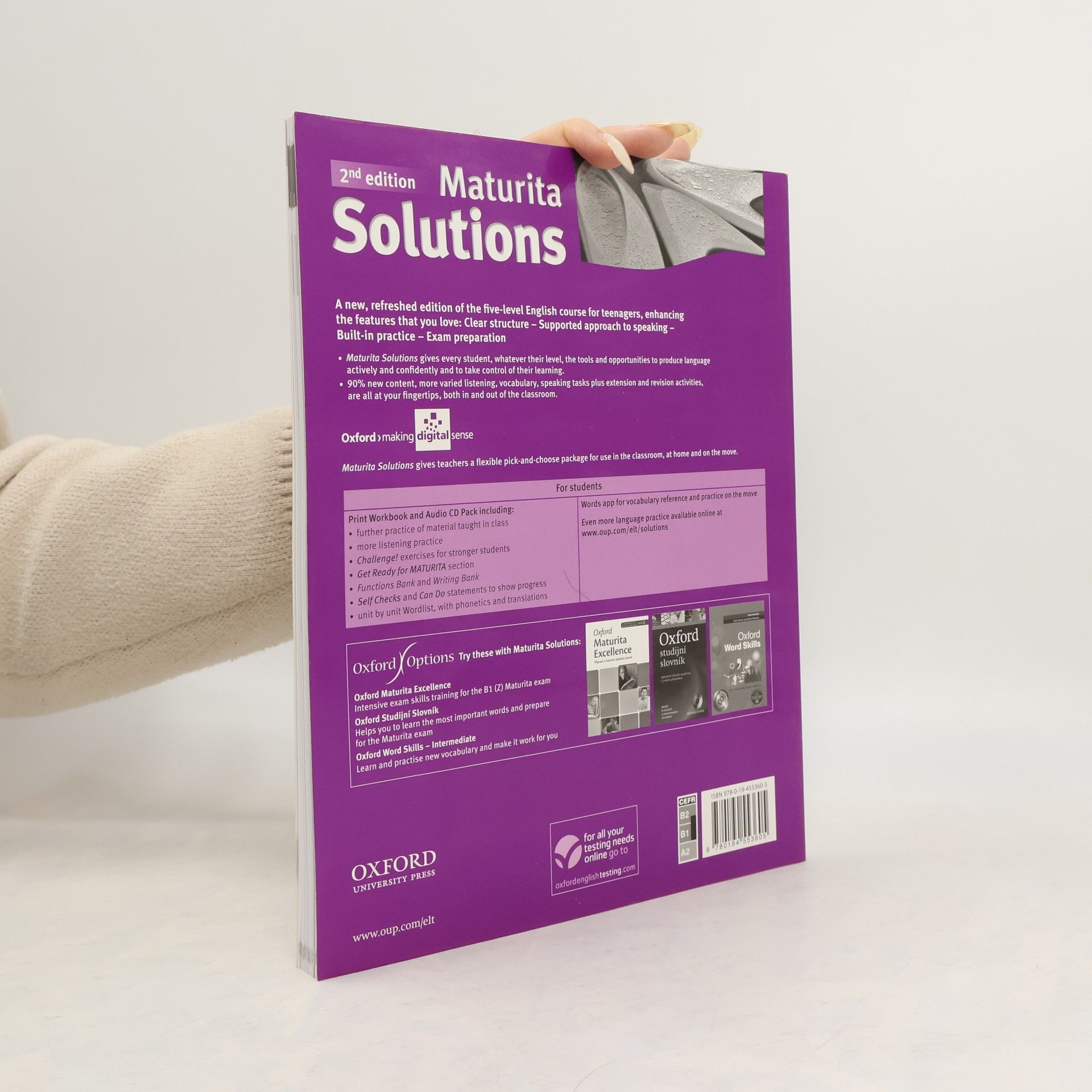 Popis: - zcela nový pětidílný kurz určený pro studenty českých středních škol, kteří se připravují na NOVOU MATURITU z anglického jazyka - přehledná, jednoduchá stavba lekce: jedna stránka = jedna 45minutová hodina probírá a procvičuje maturitní témata - GET READY FOR MATURITA - připravuje na všechny části a na obě úrovně NOVÉ MATURITY - v metodické příručce je mnoho kopírovatelných doplňkových materiálů a nápadů pro mixed-ability classes Description: A five-level general English course for 14-19 year-olds, who are also preparing for the school-leaving exam. Overview The clear structure and step-by-step approach to communication provides supported language and skills training to get students speaking confidently. Key features * Every lesson has an outcome: the "I can" objective in each lesson gives students an immediate sense of achievement. * Clear lessons mean Solutions is quick to prepare and easy to use. * All school-leaving exam topics and task-types are covered in Solut