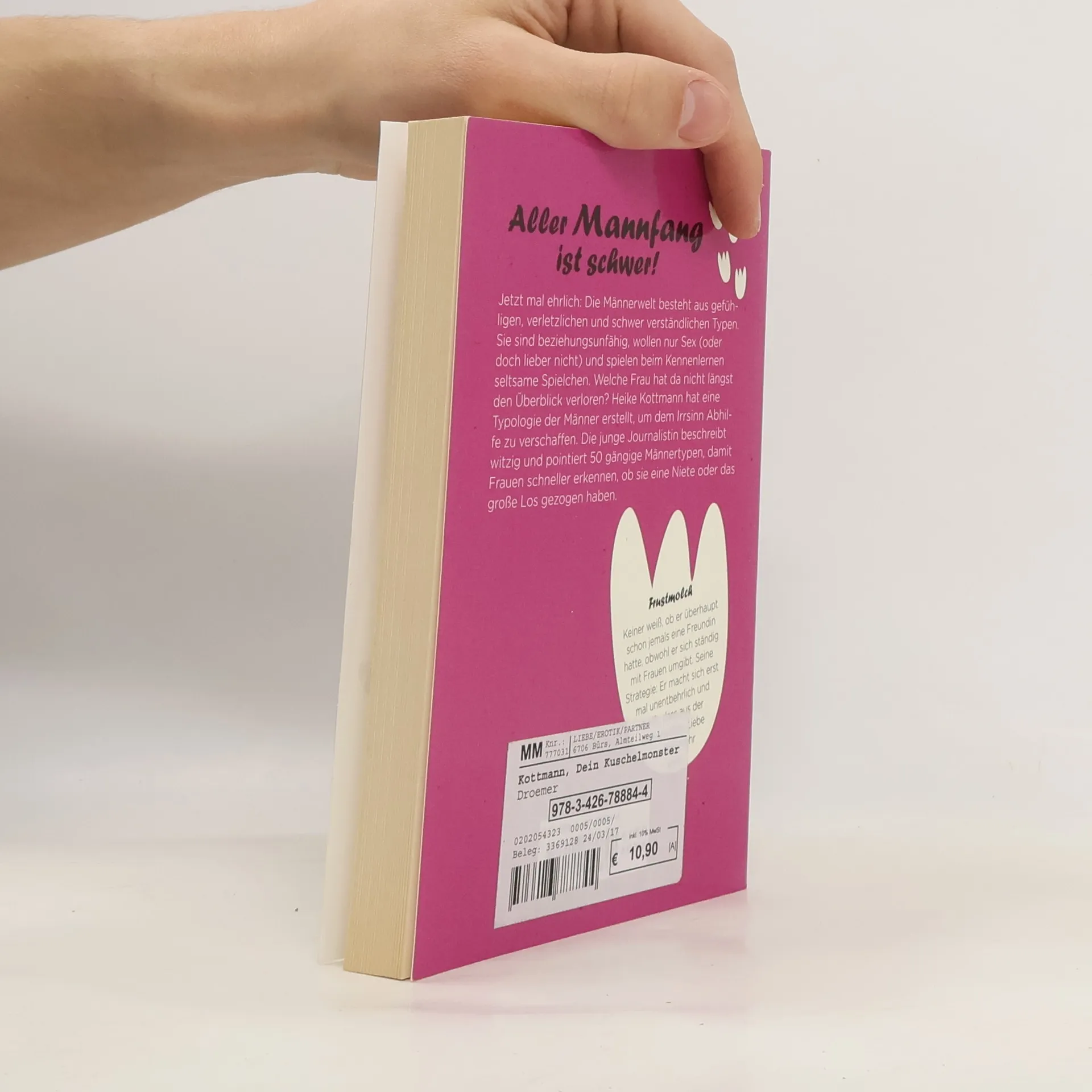Diese witzige Männertypologie ist das neue Standardwerk für jede Frau, denn mit diesem Buch durchschaut sie den Mann auf den ersten Blick und weiß, ob sie ihn weiter daten oder doch lieber die Finger von ihm lassen soll. Frauen sind kompliziert, Männer eher einfach gestrickt? Von wegen. Das gilt schon lange nicht mehr. Früher gab es Softies und Machos, heute besteht die Männerwelt aus gefühligen, verletzlichen und irgendwie schwer verständlichen Typen. Sie sind beziehungsunfähig, wollen Sex (oder doch lieber nicht) und spielen beim Kennenlernen seltsame Spielchen. Frauen haben da längst den Überblick verloren und wissen nicht mehr, woran sie sind. Heike Kottmann hat sich einmal unter den Männern umgesehen und eine Typologie erstellt, um dem Irrsinn Abhilfe zu verschaffen. Die junge Journalistin beschreibt witzig und pointiert 50 Männertypen, damit Frauen schneller erkennen, ob sie eine Niete oder das große Los gezogen haben.