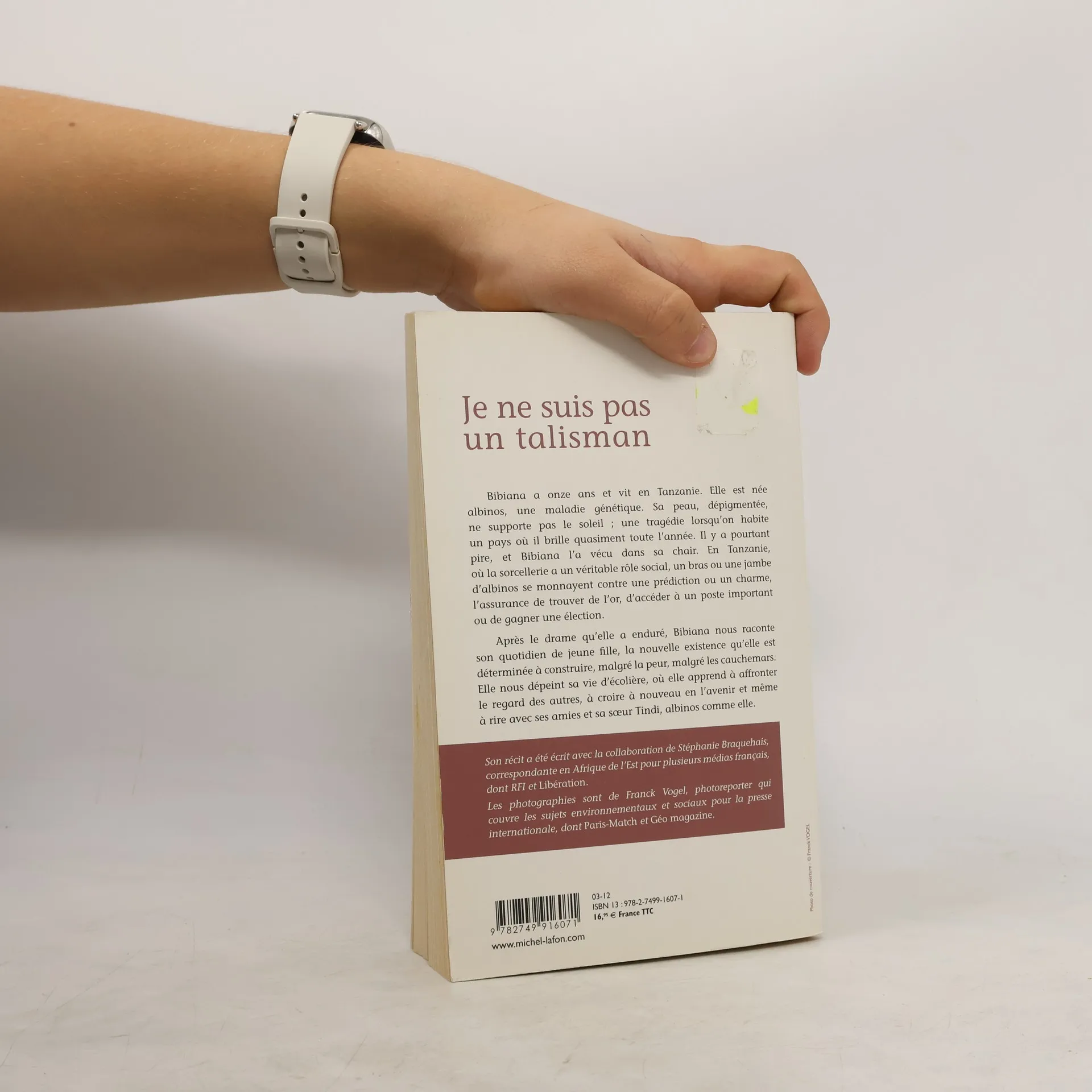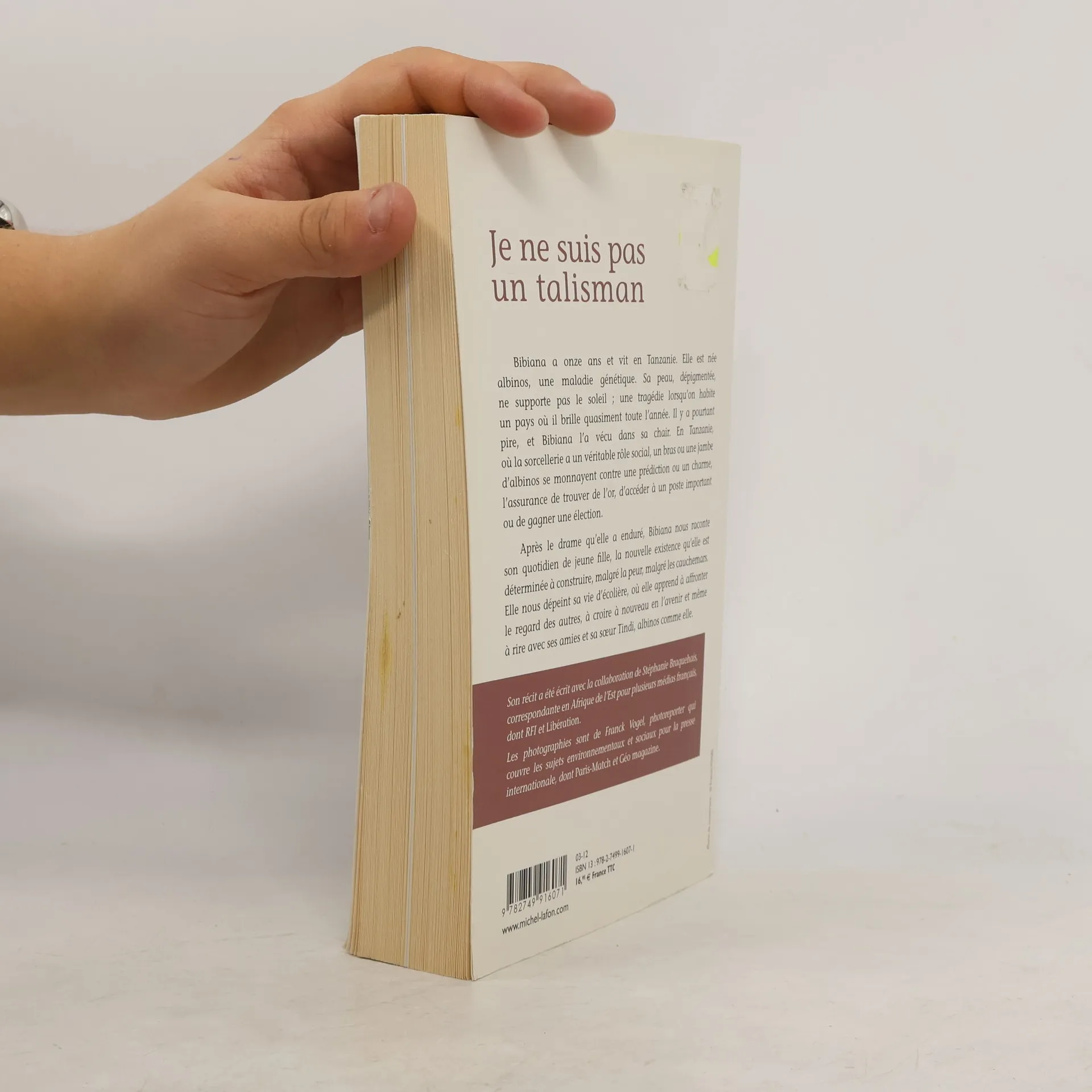 Bibiana est africaine et vit en Tanzanie, pourtant, elle a la peau blanche. Elle fait partie de ces gens qu'on appelle albinos. L'albinisme, maladie génétique, se caractérise par une dépigmentation de la peau, qui ne peut supporter le soleil. Quelle tragédie lorsqu'on habite dans l'une des régions les plus chaudes du monde ! Mais il y a pire : en Tanzanie, quand on naît albinos, on est considéré comme un être porte-bonheur. Les sorciers et marabouts en ont décidé ainsi. Dans ce pays où la sorcellerie a un véritable rôle social, un bras ou une jambe d'albinos se monnayent contre une prédiction ou un sort, l'assurance de trouver de l'or sur son terrain ou d'accéder à un poste important. C'est pourquoi les albinos subissent couramment de terribles mutilations. La croyance populaire, qui affirme que la partie amputée repoussera, étant donné que l'on attribue à ces êtres " différents " un caractère magique, n'aide pas à l'abolition de ces actes barbares. Bibiana n'a toutefois rien de magique, ce n'est qu'une enfant de huit ans à qui l'on a coupé une jambe pour se faire dire la bonne aventure. Cette jambe n'a bien entendu pas repoussé... Orpheline, elle a été recueillie par une députée, Mme Shaymaa Kwegyir, elle aussi albinos et qui se bat pour ceux qui lui ressemblent.Bibiana nous raconte son quotidien – qui est celui de tous les autres albinos –, ses traumatismes, ses craintes et son envie de vivre.