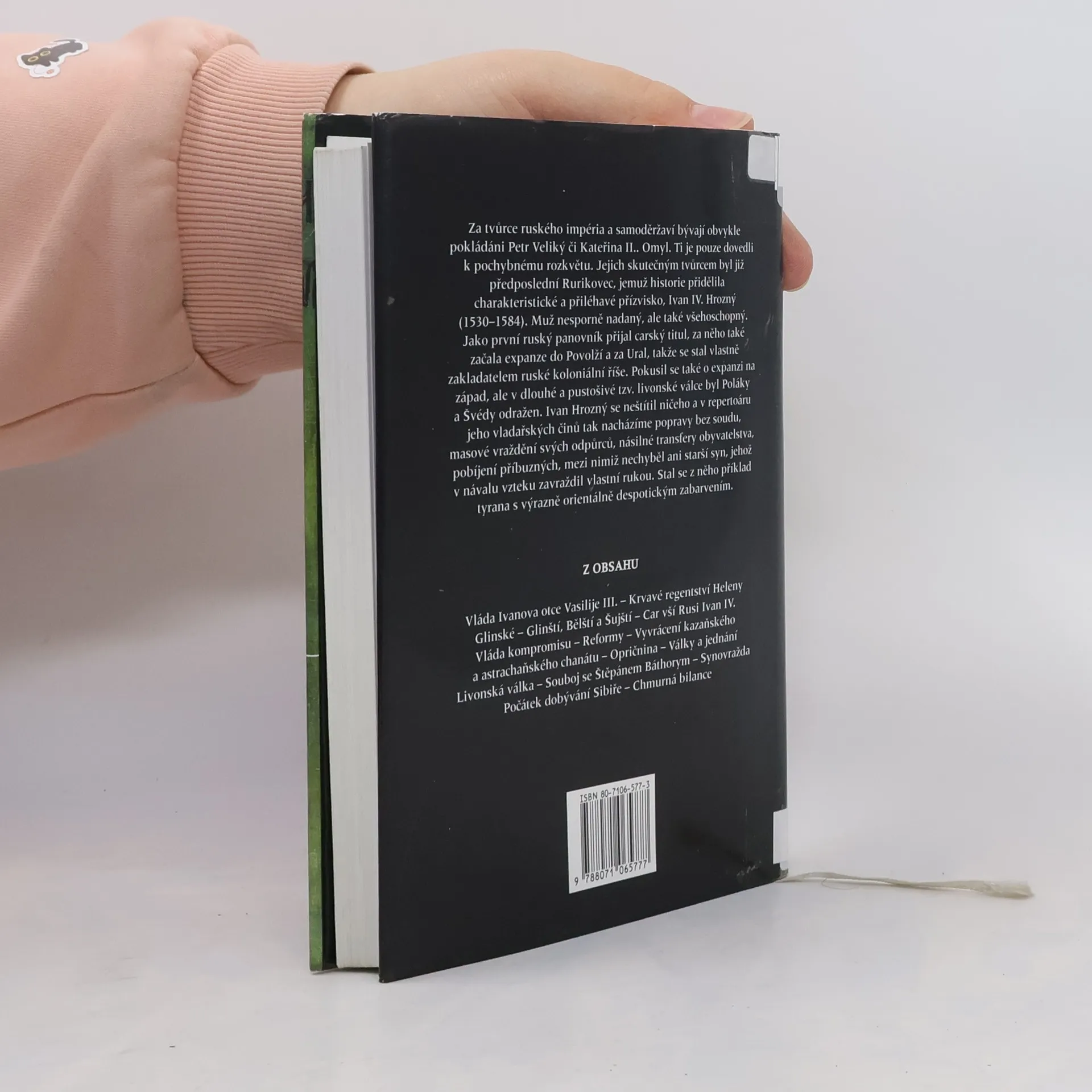 Hodnocení správních reforem a krutovlády ruského cara Ivana Hrozného (1530-1584) prováděných k nastolení absolutistické vlády nad Ruskem v 16. stol. Publikace polského historika z roku 1986 aktualizovaná jejím překladatelem, českým historikem Pavlem Bočkem. Po vylíčení dějin Ruska od vítězství Rusů nad Tatary (r. 1480) následuje vlastní Ivanův životopis. Začíná správními reformami včetně ustanovení stálé státem placené armády (r. 1550) a končí jeho neúspěchy v zahraniční politice, na poli válečném i diplomatickém. Vlastní krutovláda je líčena ve 4. kapitole nazvané Opričnina. Jednalo o soustavu vládních opatření, jimiž chtěl car posílit centralismus a zlikvidovat opozici. Významnou roli v tomto směru sehrála nová vrstva vojenské šlechty - opričniků. Tito se stali vykonavateli perzekučních zásahů. Roku 1569 byl tak vyvražděn celý Tver, r. 1570 všech 45 tisíc obyvatel Novgorodu. Do obou měst bylo přesídleno na 11 tisíc lidí z dalekého okolí. Fotografie a mapky v textu, Ivanův rodokmen, přehled literatury, jmenný a místní rejstřík.
