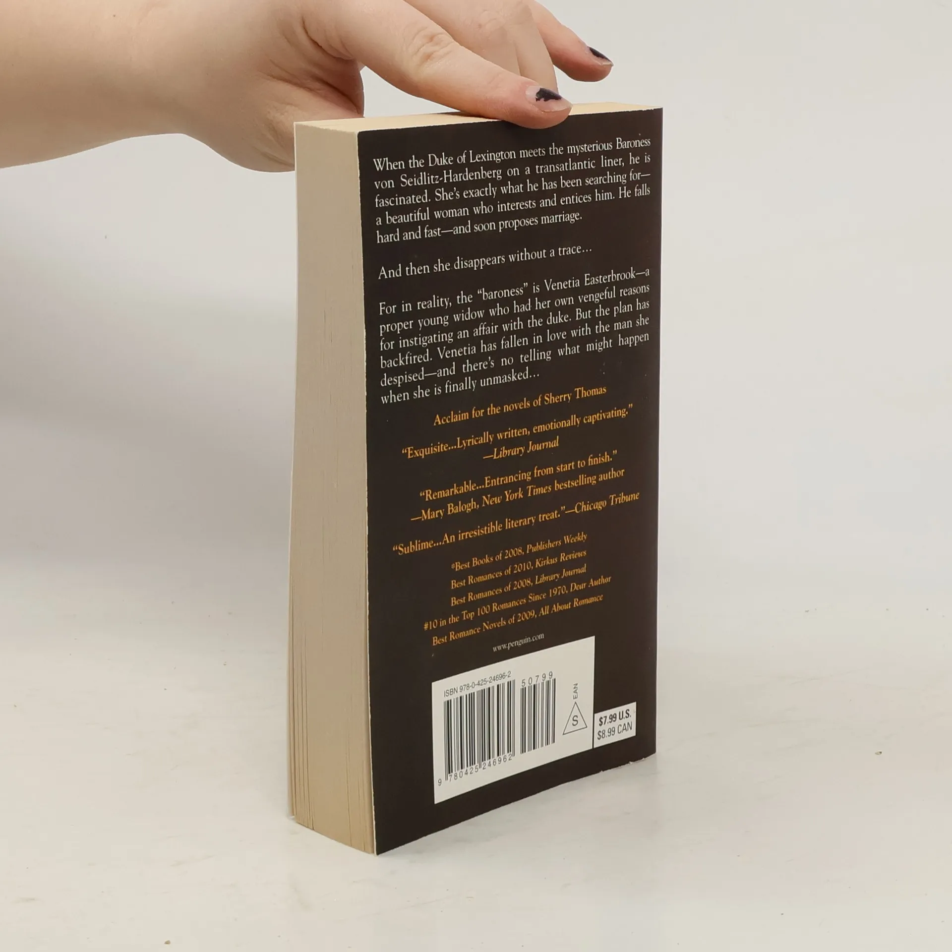 When the Duke of Lexington meets the mysterious Baroness von Seidlitz-Hardenberg on a transatlantic liner, he is fascinated. She’s exactly what he’s been searching for—a beautiful woman who interests and entices him. He falls hard and fast—and soon proposes marriage. And then she disappears without a trace… For in reality, the “baroness” is Venetia Easterbrook—a proper young widow who had her own vengeful reasons for instigating an affair with the duke. But the plan has backfired. Venetia has fallen in love with the man she despised—and there’s no telling what might happen when she is finally unmasked…