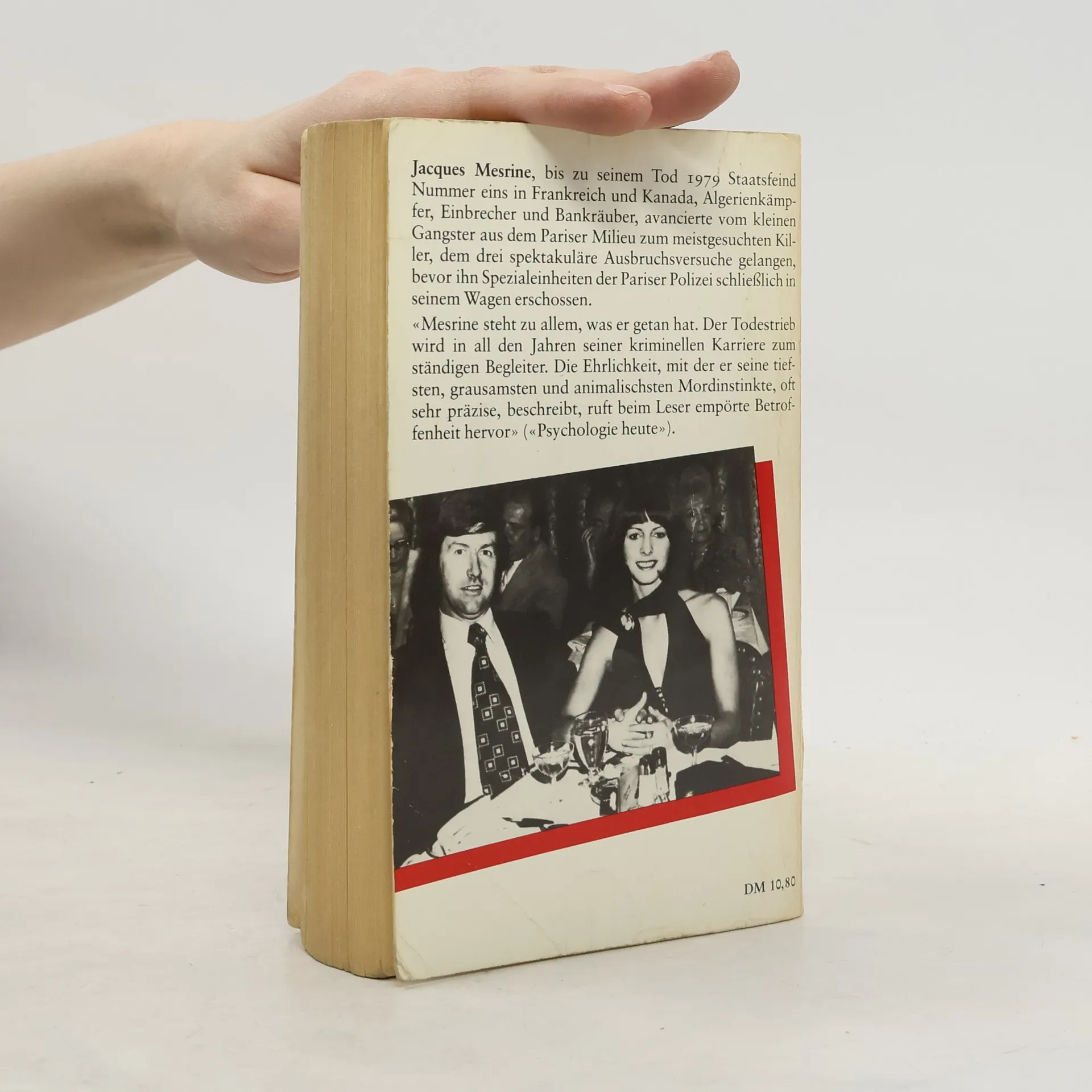 Jacques Mesrine schrieb seine Autobiographie im Hochsicherheitstrakt eines Pariser Gefängnisses. Nach seinen Kriegserfahrungen in Algerien und erfolglosen Versuchen, einer geregelten Arbeit nachzugehen, bricht Mesrine mit allen Konventionen des bürgerlichen Lebens und sagt der Gesellschaft den Kampf an. Die "Risiken eines Lebens am Rande der Gesellschaft" nimmt Mesrine mit konsequenter Entschlossenheit auf sich, er zeigt weder Reue noch Selbstmitleid. Als "Superstar" und "Ausbrecherkönig" hatte er breite Sympathien auf seiner Seite, darüber hinaus wurde er einer der - im wahrsten Sinne des Wortes - radikalsten Gegner der Hochsicherheitstrakte.