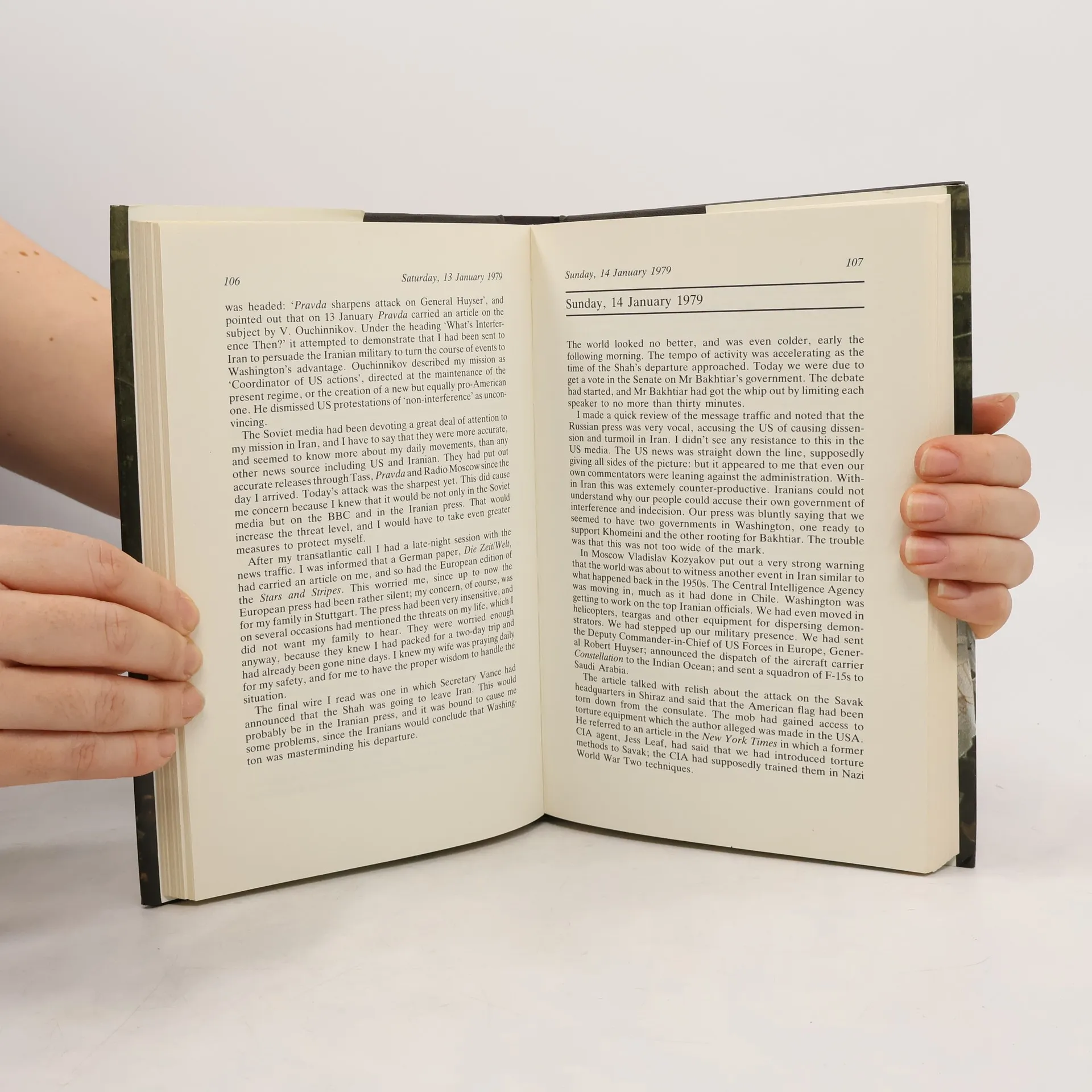 General Robert E. "Dutch" Huyser blev i januar 1989 af præsident Carter sendt til Teheran/ Iran i et forsøg på i sidste øjeblik at varetage amerikanske interesser efter den flygtede iranske Shah. I dagbogsform fortæller generalen om sit een mands felttog på dette prekære område i perioden 4. januar til 11. februar 1979, det tidspunkt da Ayatollah Khomeini vendte tilbage til Iran.