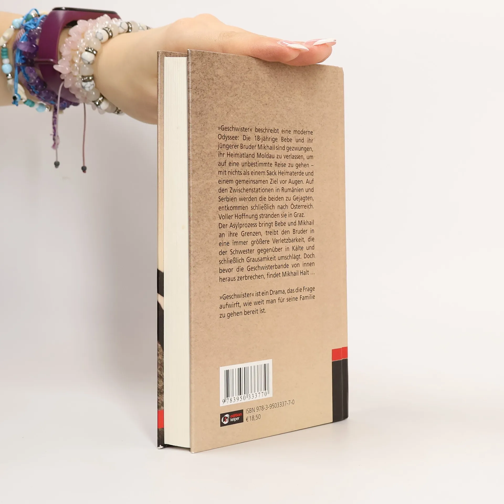 Die 18-jährigen Bebe und ihr jüngerer Bruder Mikhail sind gezwungen, ihr Heimatland Moldawien zu verlassen, um auf eine unbestimmte Reise zu gehen – mit nichts als einem Sack Heimaterde und einem gemeinsamen Ziel vor Augen. Eine Odyssee beginnt, sie werden zu Gejagten, über Rumänien und Serbien gelangen sie nach Österreich. Voller Hoffnung stranden die Geschwister in Graz und versuchen, ihr Leben in den Griff zu bekommen. Und müssen erkennen, dass sie sich angesichts der veränderten Lebensumstände nicht mehr Stütze, sondern Last sind, auf tragische Weise unlösbar miteinander verbunden. Das Besondere an diesem Roman ist die Durchführung, die der bekannte und mehrfach ausgezeichnete Regisseur und Drehbuchschreiber Mörth dem Stoff angedeihen lässt. Wie im Falle seines Romanerstlings Pony (edition keiper, 2010), der besonders bei jüngeren Leser/innen enormen Anklang gefunden hat, was einen nicht unerheblichen Teil seiner potenziell politischen Wirkung ausmacht, wurde auch dieser Roman aus dem Treatment für ein Filmdrehbuch entwickelt, welches wie auch bereits Pony den Carl-Mayer-Preis der Stadt Graz erhielt. In literarischer Hinsicht ist der Roman somit durch seine szenische Darstellungsform, seine lebendigen Dialoge sowie die genaue, am vielsagenden Detail festgemachte Charakterisierung und Entwicklung der Figuren in ihrem Umfeld gekennzeichnet. Hier zeigt sich abermals in maßstabsetzender Weise, mit welch bemerkenswerten Resultatensich filmische Kompetenz mit literarischem Ausdruck zu verbinden vermag und dergestalt die Entwicklung erzählerischer Konventionen und Stilelemente voranbringt.
