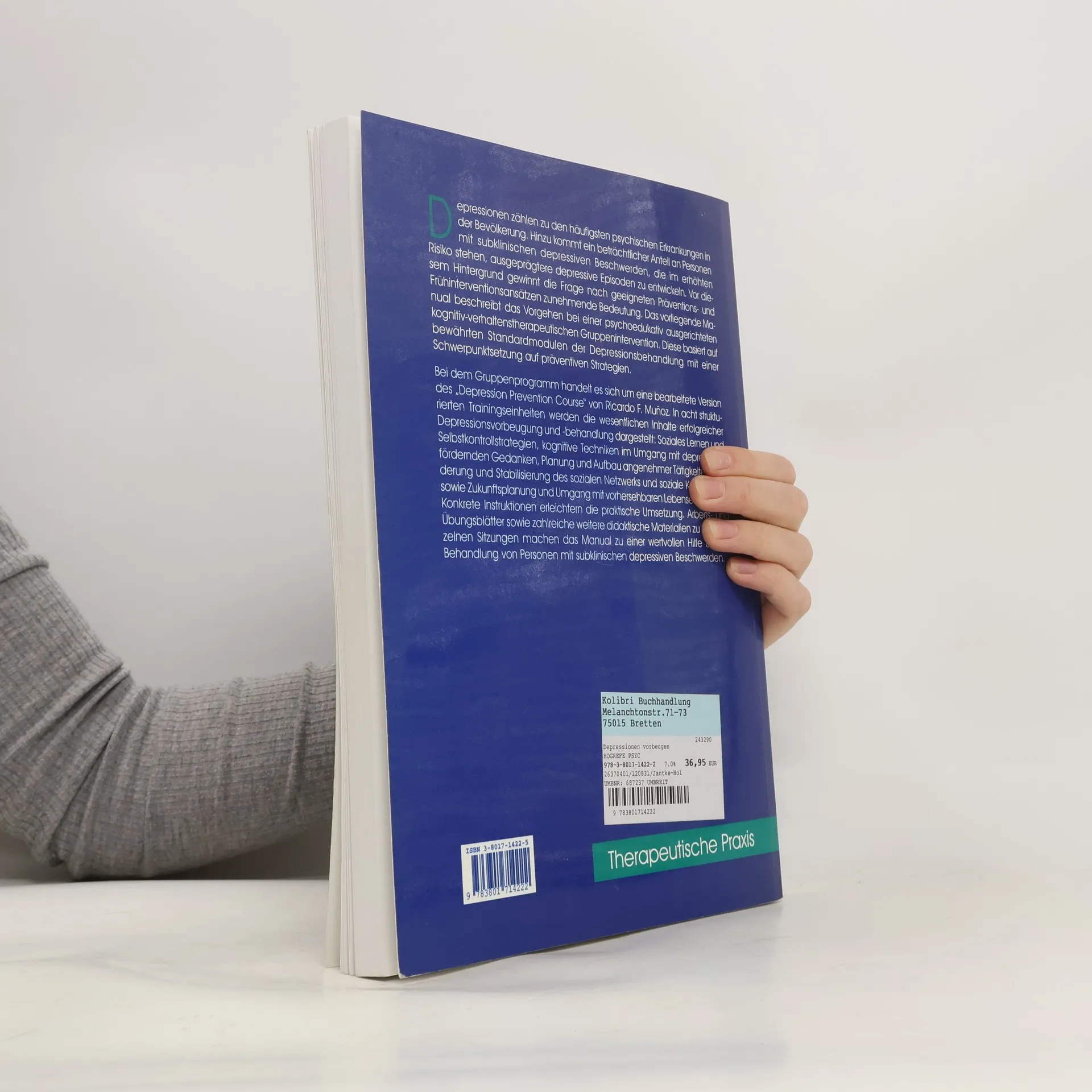 Depressionen zählen zu den häufigsten psychischen Erkrankungen in der Bevölkerung. Hinzu kommt ein beträchtlicher Anteil an Personen mit subklinischen depressiven Beschwerden. Das vorliegende Manual beschreibt das Vorgehen bei einer psychoedukativ ausgerichteten kognitiv-verhaltenstherapeutischen Gruppenintervention. Diese basiert auf bewährten Standardmodulen der Depressionsbehandlung mit einer Schwerpunktsetzung auf präventiven Strategien. In acht strukturierten Trainingseinheiten werden die wesentlichen Inhalte erfolgreicher Depressionsvorbeugung und -behandlung Soziales Lernen und Selbstkontrollstrategien, kognitive Techniken im Umgang mit depressionsfördernden Gedanken, Planung und Aufbau angenehmer Tätigkeiten, Förderung und Stabilisierung des sozialen Netzwerks und soziale Kompetenz sowie Zukunftsplanung und Umgang mit vorhersehbaren Lebensereignissen. Konkrete Instruktionen erleichtern die praktische Umsetzung. Arbeits- und Übungsblätter sowie zahlreiche weitere didaktische Materialien zu den einzelnen Sitzungen machen das Manual zu einer wertvollen Hilfe bei der Behandlung von Personen mit subklinischen depressiven Beschwerden.