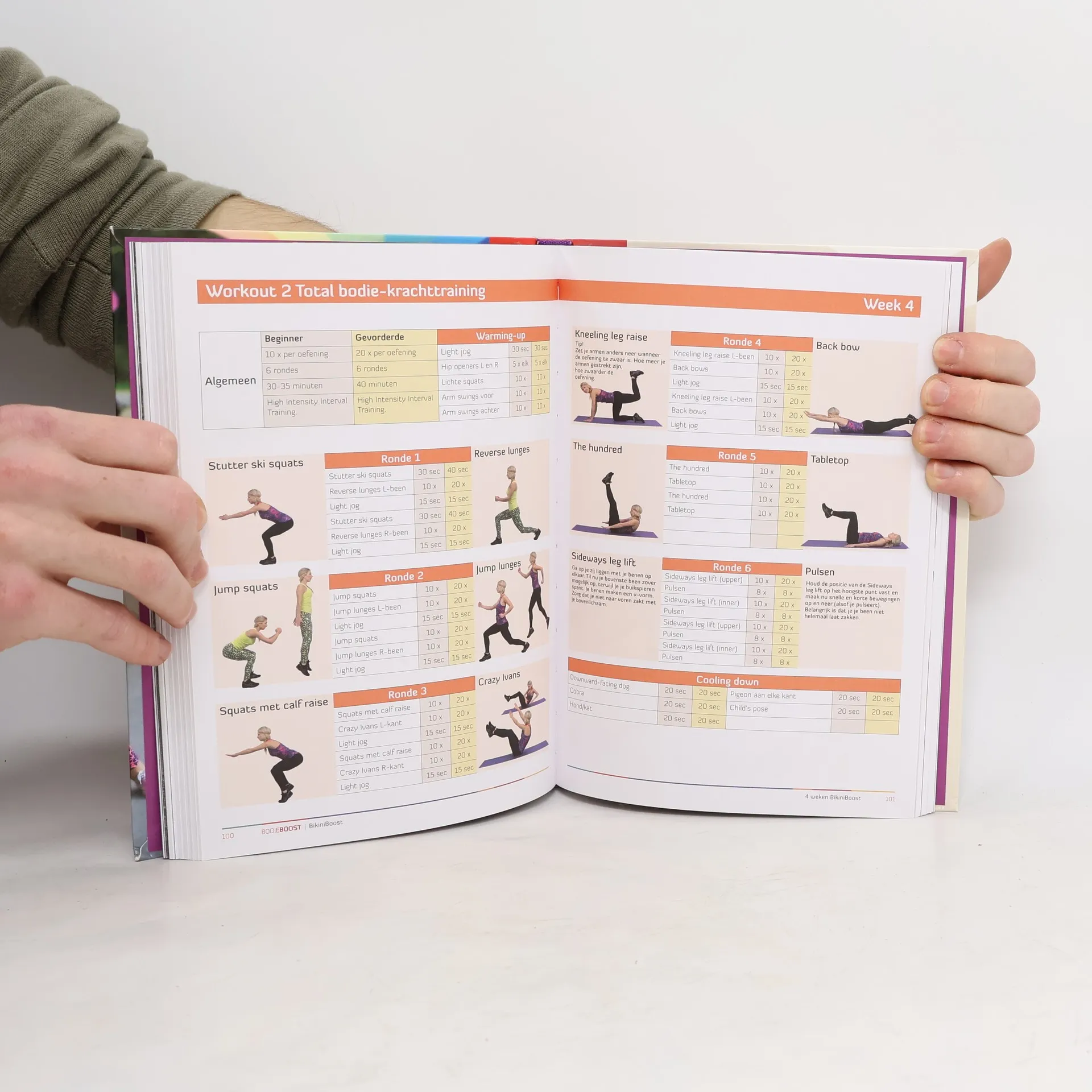Programma om in vier weken af te slanken; met oefeningen en recepten.