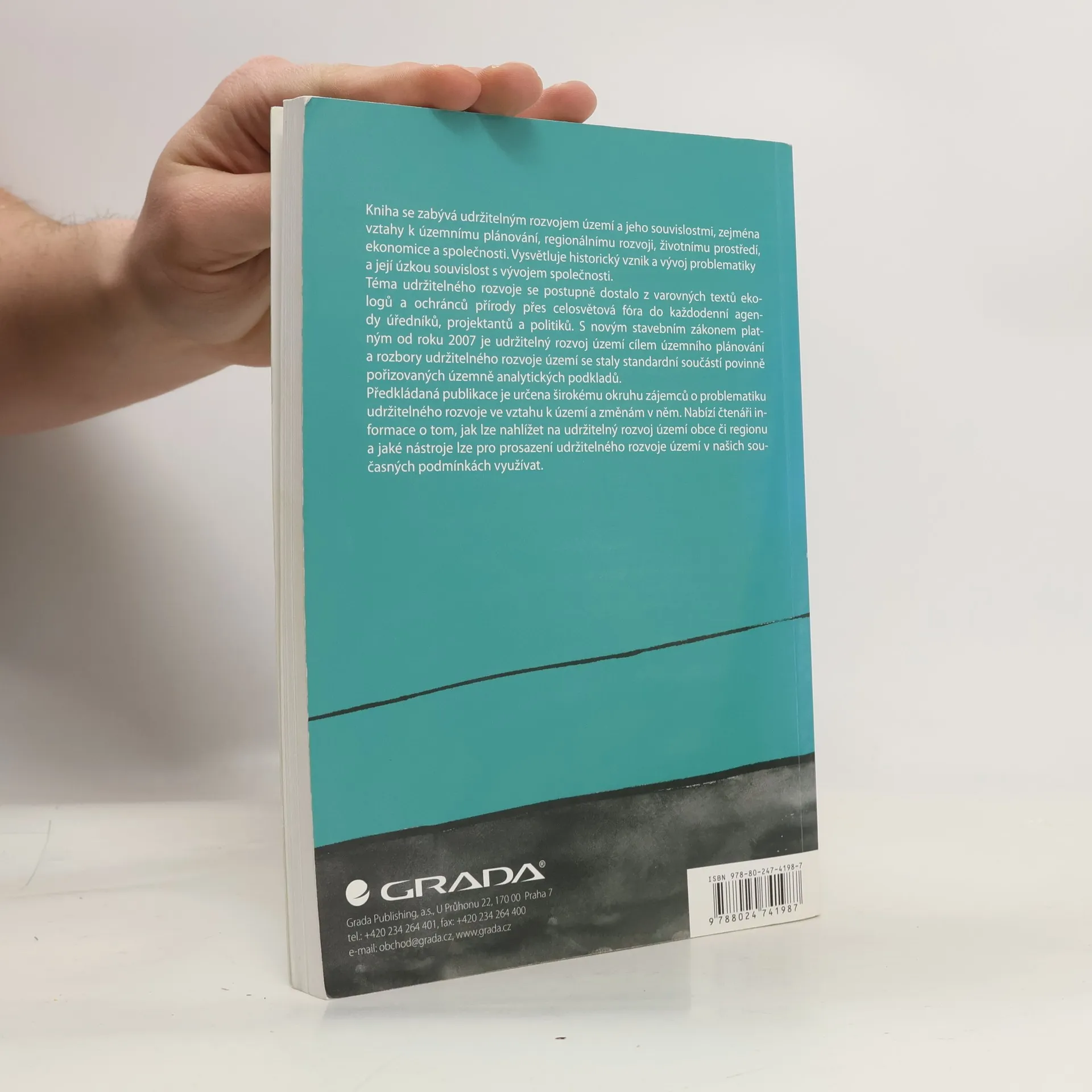 Kniha se zabývá udržitelným rozvojem území a jeho souvislostmi, zejména vztahy k územnímu plánování, regionálnímu rozvoji, životnímu prostředí, ekonomice a společnosti. Vysvětluje historický vznik a vývoj problematiky a její úzkou souvislost s vývojem společnosti. Hodnotí stav implementace udržitelného rozvoje v podmínkách ČR s důrazem na oblast územního plánování. Pro ilustraci jsou hojně využity vhodné příklady z praxe a důsledně jsou uváděny vlastní závěry k možným postupům a řešením udržitelného rozvoje území.Publikaci je možné zakoupit v knihkupectví Česká technika - nakladatelství ČVUT (Bílá 6, Praha 6 - Dejvice), v knihkupectví Stavoprojekta (Kounicova 67, Brno) nebo přímo v sídle společnosti Grada Publishing (U Průhonu 22, Praha 7).