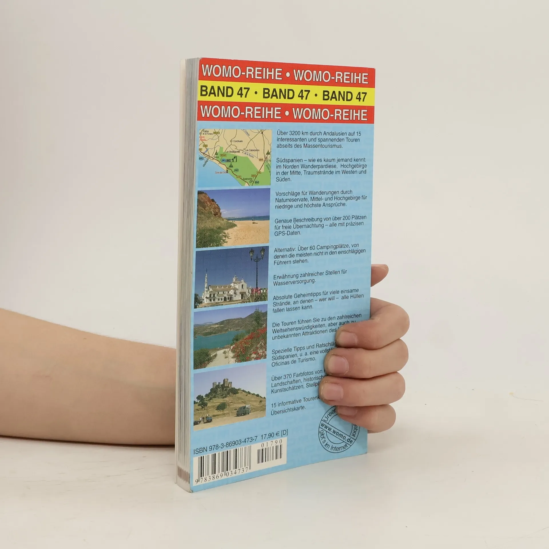 Über 3200 km durch Andalusien auf 15 interessanten und spannenden Touren abseits des Massentourismus. Südspanien – wie es kaum jemand kennt: im Norden Wanderpardiese, Hochgebirge in der Mitte, Traumstrände im Westen und Süden. Vorschläge für Wanderungen durch Naturreservate, Mittel- und Hochgebirge für niedrige und höchste Ansprüche. Genaue Beschreibung von über 200 Plätzen für freie Übernachtung – alle mit präzisen GPS-Daten. Alternativ: Über 60 Campingplätze, von denen die meisten nicht in den einschlägigen Führern stehen. Erwähnung zahlreicher Stellen für Wasserversorgung. Absolute Geheimtipps für viele einsame Strände, an denen – wer will – alle Hüllen fallen lassen kann. Die Touren führen Sie zu den zahlreichen Weltsehenswürdigkeiten, aber auch zu unbekannten Attraktionen des Landes. Spezielle Tipps und Ratschläge für Südspanien, u. a. eine vollständige Liste der Oficinas de Turismo. Über 370 Farbfotos von herrlichen Landschaften, historischer Architektur, Kunstschätzen, Stellplätzen. 15 informative Tourenkarten und eine Übersichtskarte.