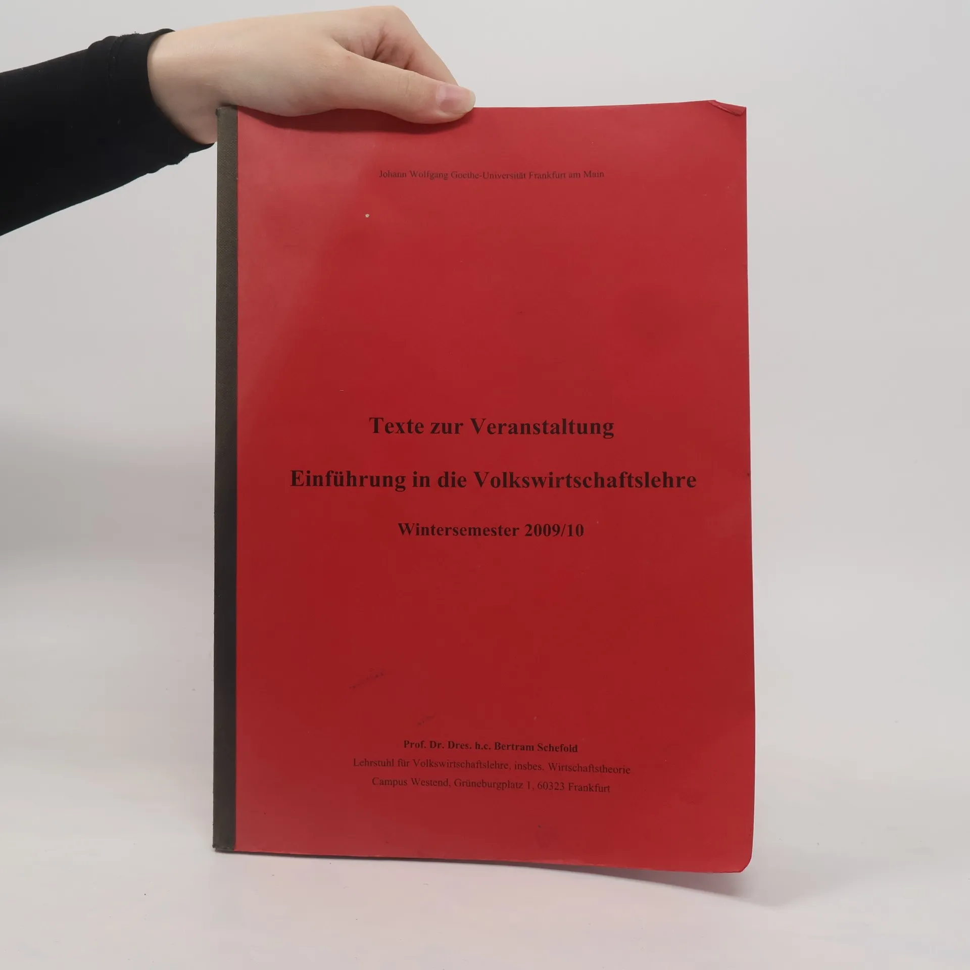 Texte zur Veranstaltung. Einführung in die Volkswirtschaftslehre, Bertram Schefold