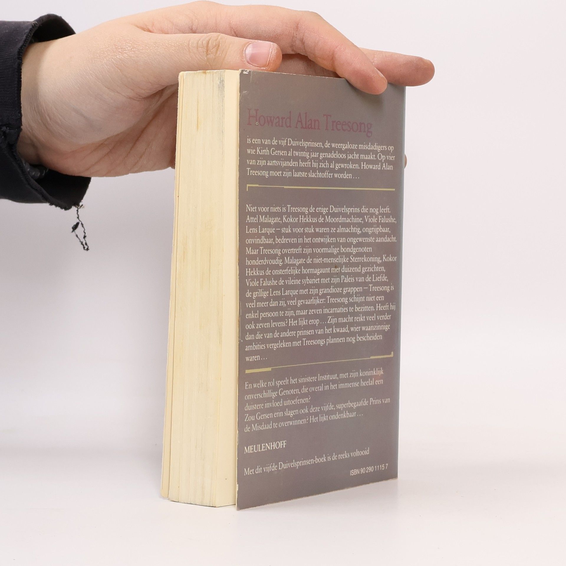 Howard Alan Treesong is een van de vijf Duivelsprinsen, de weergaloze misdadigers op wie Kirth Gersen al twintig jaar genadeloos jacht maakt. Op vier van zijn aartsvijanden heeft hij zich al gewroken. Howard Alan Treesong moet zijn laatste slachtoffer worden... Niet voor niets is Treesong de enige Duivelsprins die nog leeft. Attel Malagate, Kokor Hekkus de Moordmachine, Viole Falushe, Lens Larque - stuk voor stuk waren ze almachtig, ongrijpbaar, onvindbaar, bedreven in het ontwijken van ongewenste aandacht. Maar Treesong overtreft zijn voormalige bondgenoten honderdvoudig. Malagate de niet-menselijke Sterrekoning, Kokor Hekkus de onsterfelijke hormagaunt met duizend gezichten, Viole Falushe de vileine sybariet met zijn Paleis van de Liefde, de grillige Lens Larque met zijn grandioze grappen - Treesong is veel meer dan zij, veel gevaarlijker: Treesong schijnt niet een enkel persoon te zijn, maar zeven incarnaties te bezitten. Heeft hij ook zeven levens? Het lijkt erop... Zijn macht reikt veel verder dan die van de andere prinsen van het kwaad, wier waanzinnige ambities vergeleken met Treesongs plannen nog bescheiden waren... En welke rol speelt het sinistere Instituut, met zijn koninklijk onverschillige Genoten, die overal in het immense heelal een duistere invloed uitoefenen? Zou Gersen erin slagen ook deze vijfde, superbegaafde Prins van de Misdaad te overwinnen? Het lijkt ondenkbaar...