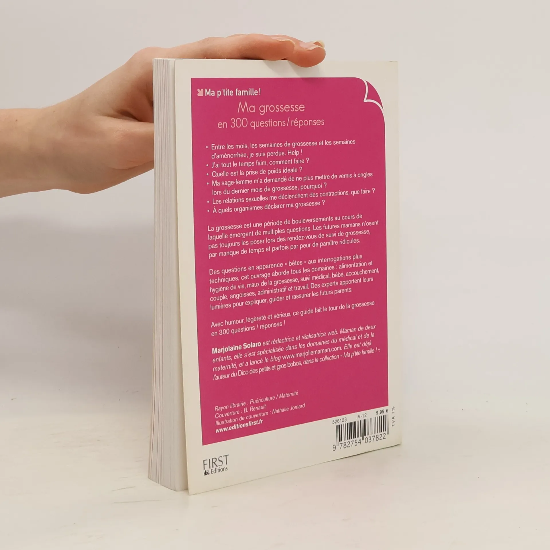 Entre les mois, les semaines de grossesse et les semaines d'aménorrhée, je suis perdue. Help ! J'ai tout le temps faim, comment faire ? Quelle est la prise de poids idéale ? Ma sage-femme m'a demandé de ne plus mettre de vernis à ongles lors du dernier mois de grossesse, pourquoi ? Les relations sexuelles me déclenchent des contractions, que faire ? À quels organismes déclarer ma grossesse ? La grossesse est une période de bouleversements au cours de laquelle émergent de multiples questions. Les futures mamans n'osent pas toujours les poser lors des rendez-vous de suivi de grossesse, par manque de temps et parfois par peur de paraître ridicules. Des questions en apparence "bêtes" aux interrogations plus techniques, cet ouvrage aborde tous les domaines : alimentation et hygiène de vie, maux de la grossesse, suivi médical, bébé, accouchement, couple, angoisses, administratif et travail. Des experts apportent leurs lumières pour expliquer, guider et rassurer les futurs parents. Avec humour, légèreté et sérieux, ce guide fait le tour de la grossesse en 300 questions/réponses !