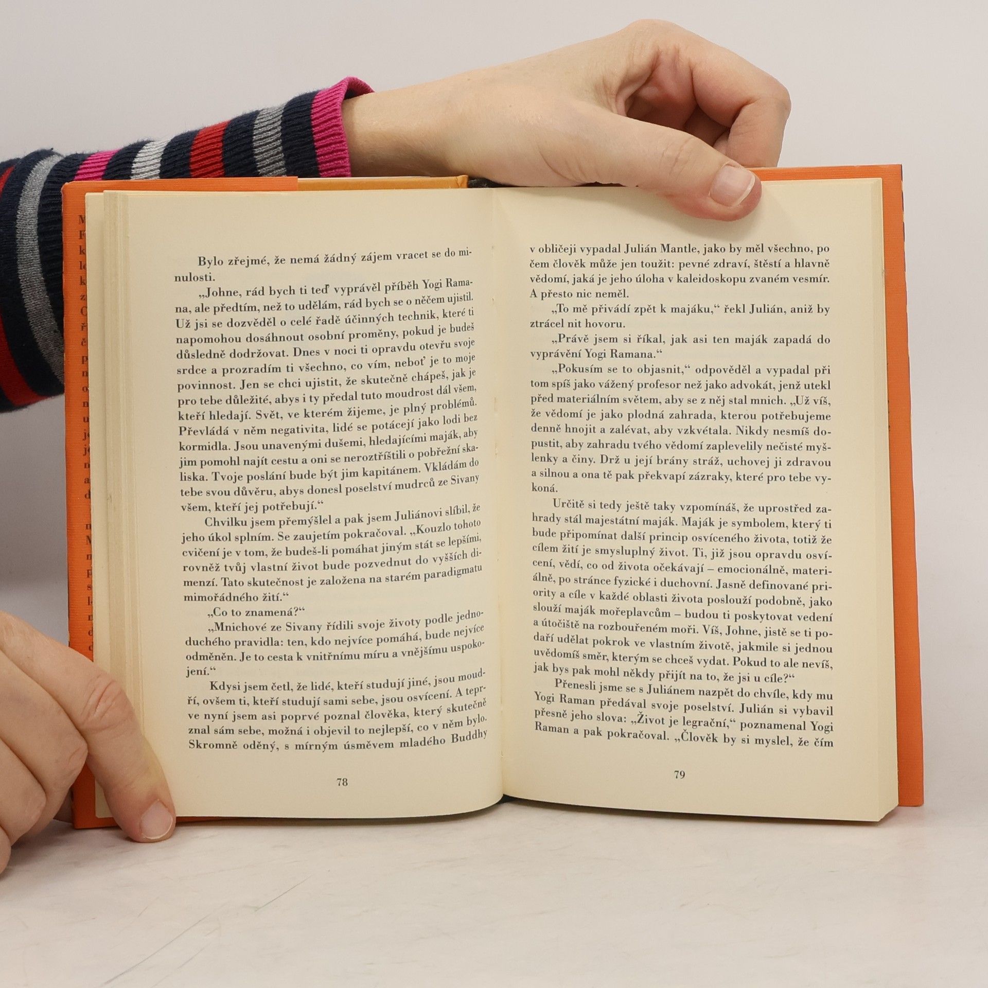Kniha patřící mezi nejznámější klasická díla s duchovní a psychologickou tematikou. Tato „úchvatná knížka, která přináší potěšení i poznání“, jak se o ní vyjádřil Paulo Coelho, byla přeložena do třiačtyřiceti jazyků a inspiruje miliony čtenářů na celém světě. Vypráví příběh o slavném a bohatém právníkovi Julianu Mantlovi, jenž se ocitl na pokraji smrti, když jednoho dne v přeplněné soudní síni utrpěl infarkt. Jeho fyzický kolaps je provázen krizí duchovní, která jej donutí hluboce se zamyslet nad neutěšeným stavem svého života a vydat se hledat odpovědi na nejdůležitější otázky lidského bytí. V naději, že nalezne štěstí a splnění svých snů, vypravuje se Julián Mantle na putování do nedostupných indických končin obydlených prastarou východní kulturou. Zde se postupně seznamuje se starobylou moudrostí a filozofií, která jej naučí objevovat, kultivovat a ovládat skrytý potenciál vlastního vědomí, těla i ducha. Někdejší slavný advokát, který se postupně oprošťuje od svého dosavadního životního stylu, prochází hlubokou osobní proměnou. Příběh Juliána Mantla čtenáře krok za krokem provází na cestě k sebepoznání a ke smysluplnému a vyrovnanému životu.