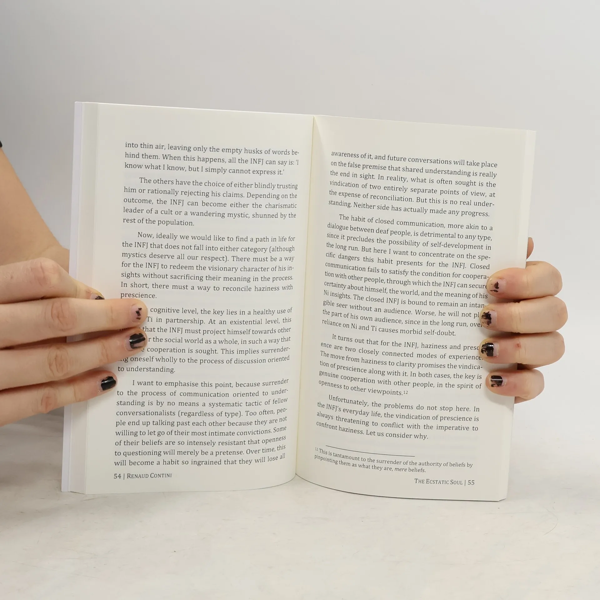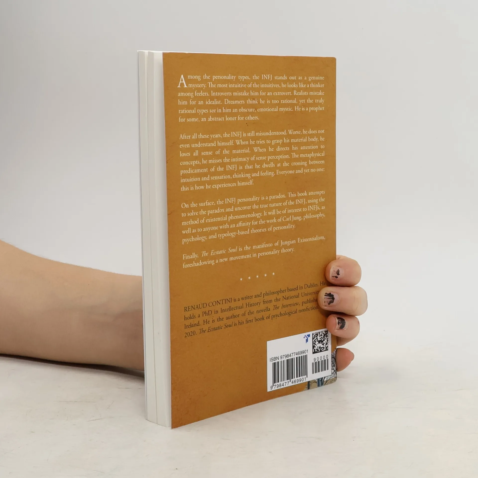 Among the personality types, the INFJ stands out as a genuine mystery. The most intuitive of the intuitives, he looks like a thinker among feelers. Introverts mistake him for an extrovert. Realists mistake him for an idealist. Dreamers think he is too rational, yet the truly rational types see in him an obscure, emotional mystic. He is a prophet for some, an abstract loner for others.After all these years, the INFJ is still misunderstood. Worse, he does not even understand himself. When he tries to grasp his material body, he loses all sense of the material. When he directs his attention to concepts, he misses the intimacy of sense perception. The metaphysical predicament of the INFJ is that he dwells at the crossing between intuition and sensation, thinking and feeling. Everyone and yet no this is how he experiences himself.On the surface, the INFJ personality is a paradox. This book attempts to solve the paradox and uncover the true nature of the INFJ, using the method of existential phenomenology. It will be of interest to INFJs, as well as to anyone with an affinity for the work of Carl Jung, philosophy, psychology, and typology-based theories of personality.Finally, The Ecstatic Soul is the manifesto of Jungian Existentialism, foreshadowing a new movement in personality theory.