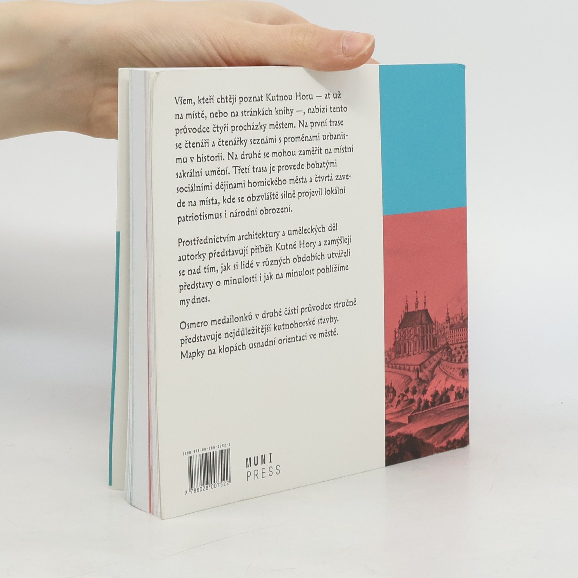 Všem, kteří chtějí poznat Kutnou Horu - ať už na místě, nebo na stránkách knihy -, nabízí tento průvodce čtyři procházky městem. Na první trase se čtenáři a čtenářky seznámí s proměnami urbanismu v historii. Na druhé se mohou zaměřit na místní sakrální umění. Třetí trasa je provede bohatými sociálními dějinami hornického města a čtvrtá zavede na místa, kde se obzvláště silně projevil lokální patriotismus i národní obrození. Prostřednictvím architektury a uměleckých děl autorky představují příběh Kutné Hory a zamýšlejí se nad tím, jak si lidé v různých obdobích utvářeli představy o minulosti i jak na minulost pohlížíme my dnes. Osmero medailonků v druhé části průvodce stručně představuje nejdůležitější kutnohorské stavby. Mapky na klopách usnadní orientaci ve městě.