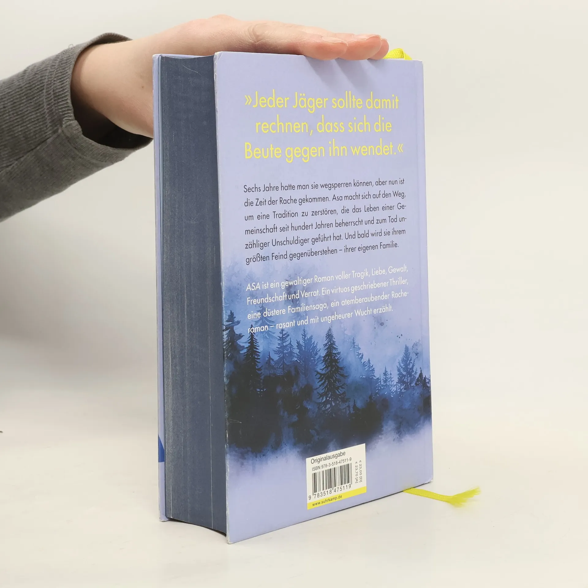 Sechs Jahre konnten sie sie wegsperren und bei dem Gedanken an sie beruhigt aufseufzen. Sechs Jahre konnten sie des Nachts ruhiger schlafen und mussten des Tags nicht nervös über die Schulter blicken, ob sie ihnen nicht doch auf den Fersen ist. Aber diese Zeit ist jetzt vorbei, weil sie wieder da Asa, die Legende, Asa, die Unbezwingbare, die große Jägerin, deren Feinde sie ehrfurchtsvoll »mir« nennen, Frieden. Und sie Ihr Frieden wird ein endgültiger sein, Asa hatte sechs Jahre Zeit für ihren Racheplan. Denn Rache wird sie nehmen. An all jenen, die die unbarmherzige und grausame Tradition, die »Prüfung«, weitergeführt und ihr damit das Liebste genommen haben. Bei ihrem Kampf findet Asa loyale Verbündete, erfährt niederträchtigen Verrat, trifft auf mächtige Gegner und stellt sich schließlich ihrem größten Feind – ihrer eigenen Familie.