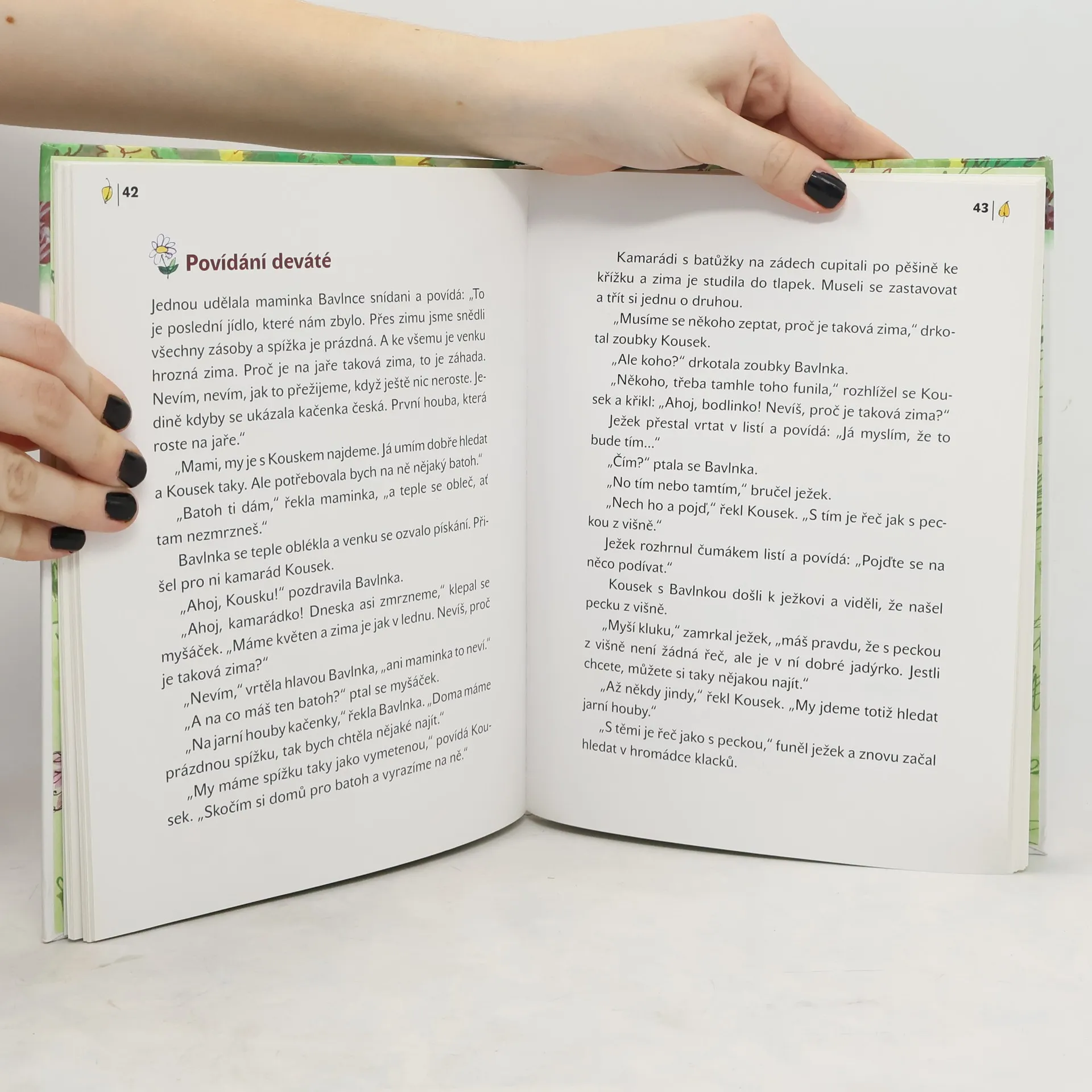 Myšáček Kousek a myška Bavlnka jsou dva nerozluční kamarádi, kteří spolu běhají po lukách a stráních, pomáhají mamince a občas něco většího či menšího vyvedou. V osmnácti laskavých povídáních se zrcadlí autorova láska k prosté české přírodě a stále se opakující kráse čtyř ročních období. A tak Kousek a Bavlnka čekají, až spadne červené jablíčko, uvažují, proč padá listí, hledají ve sněhu ztracené rukavice, větří ve vzduchu čumáčky jaro, vyvádějí se aprílem a napichují na metličku lesní jahody na lívance. A když si náhodou s něčím neví rady, pořád je tu ještě děda Vševěda... Od autora oblíbených příběhů o včelích medvídcích vyšly v Knižním klubu knížky Chumelení a Knížkový pejsek.