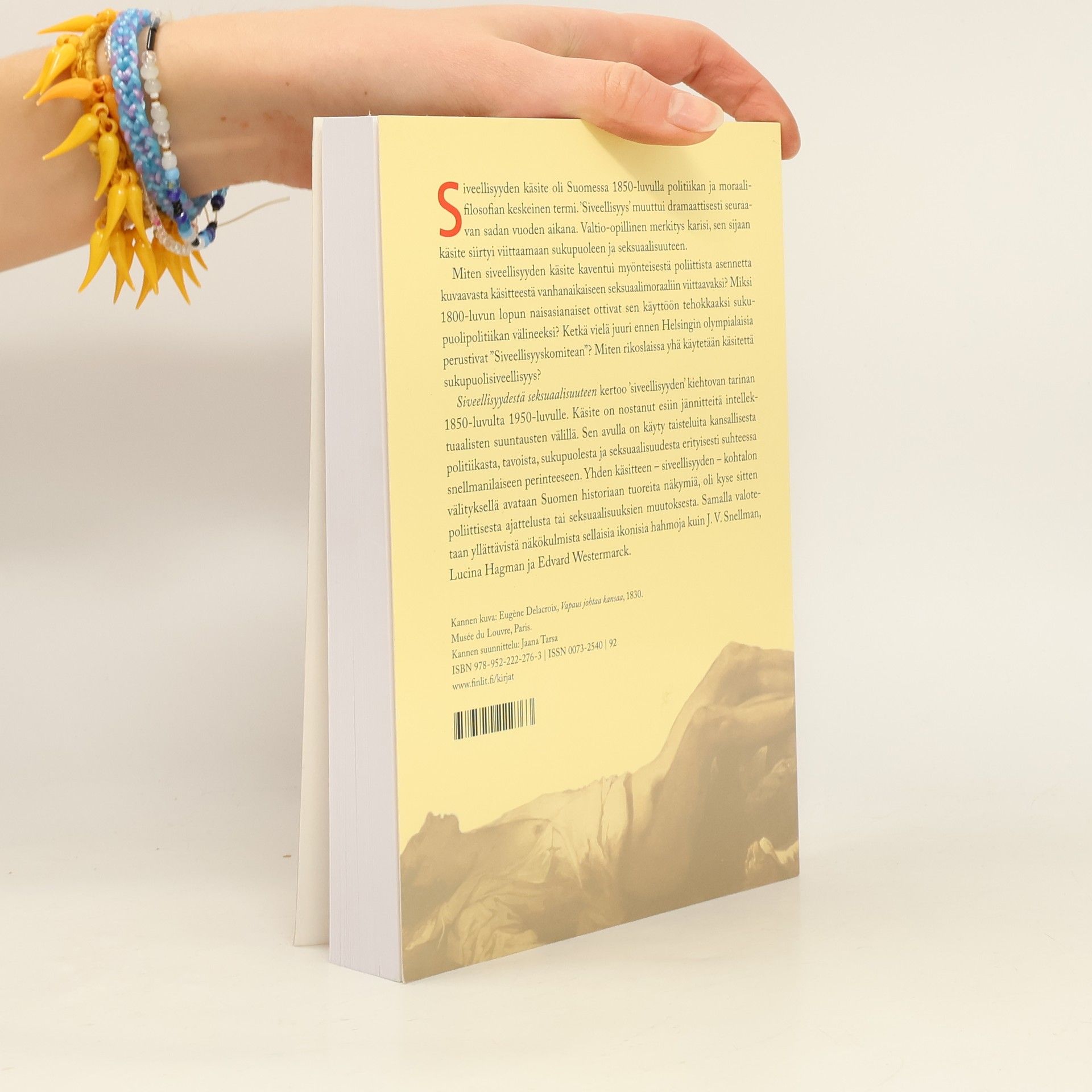 ’Siveellisyys’ oli Suomessa 1850-luvulla politiikan ja moraalifilosofian keskeinen käsite. Seuraavan sadan vuoden aikana tapahtui dramaattinen muutos, ja termi siirtyi viittaamaan valtio-opillisen merkityksen sijaan sukupuoleen ja seksuaalisuuteen. Miten siveellisyyden käsite kaventui myönteisestä, poliittista asennetta kuvaavasta käsitteestä vanhanaikaiseen seksuaalimoraaliin viittaavaksi?Teos kertoo ’siveellisyyden’ monivaiheisen tarinan 1850-luvulta 1950-luvulle. Käsite on nostanut esiin jännitteitä intellektuaalisten suuntausten välillä. Sen avulla on käyty taisteluita kansallisesta politiikasta, tavoista, sukupuolesta ja seksuaalisuudesta erityisesti suhteessa snellmanilaiseen perinteeseen. Siveellisyys-käsitteen välityksellä avataan tuoreita näkymiä Suomen historiaan ja valotetaan uusista näkökulmista sellaisia ikonisia hahmoja kuten J. V. Snellman, Lucina Hagman ja Edvard Westermarck.