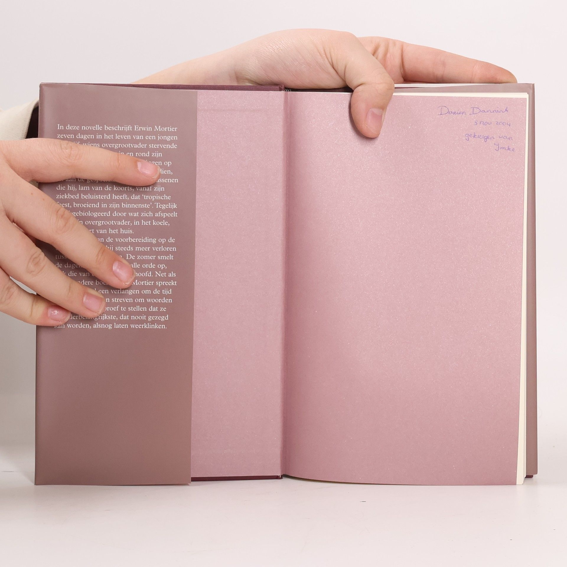 In deze novelle beschrijft Erwin Mortier zeven dagen in het leven van een jongen van vijf, wiens overgrootvader stervende is. De zomerse hitte in en rond zijn geboortehuis roepen herinneringen op aan zijn eigen ziekte, het jaar voordien, en aan de gesprekken van de volwassenen die hij, lam van de koorts, vanaf zijn ziekbed beluisterd heeft, dat 'tropische feest, broeiend in zijn binnenste'. Tegelijk is hij gebiologeerd door wat zich afspeelt rond zijn overgrootvader, in het koele, donkere hart van het huis. In de dagen van de voorbereiding van de begrafenis loopt hij steeds meer verloren tussen de volwassenen. De zomer smelt de dagen aaneen en heft alle orde op, ook die van de taal in zijn hoofd. Net als bij de andere boeken van Mortier spreekt uit dit verhaal een verlangen om de tijd teniet te doen; een streven om woorden dusdanig op proef te stellen dat ze het allerbelangrijkste, dat nooit gezegd kan worden, alsnog laten weerklinken. Erwin Mortiers debuutroman Marcel (1999) werd bekroond met de Gerard Walschapprijs, de Van der Hoogtprijs en het Gouden Ezelsoor. In 2000 verscheen zijn tweede roman, Mijn tweede huid, genomineerd voor onder andere de Libris Literatuur Prijs en De Gouden Uil. De dichtbundel Vergeten licht (2001) ontving een jaar later de C. Buddingh'-prijs. In 2002 volgde de derde roman Sluitertijd, genomineerd voor de AKO literatuur Prijs, en de essaybundel Pleidooi voor de zonde.