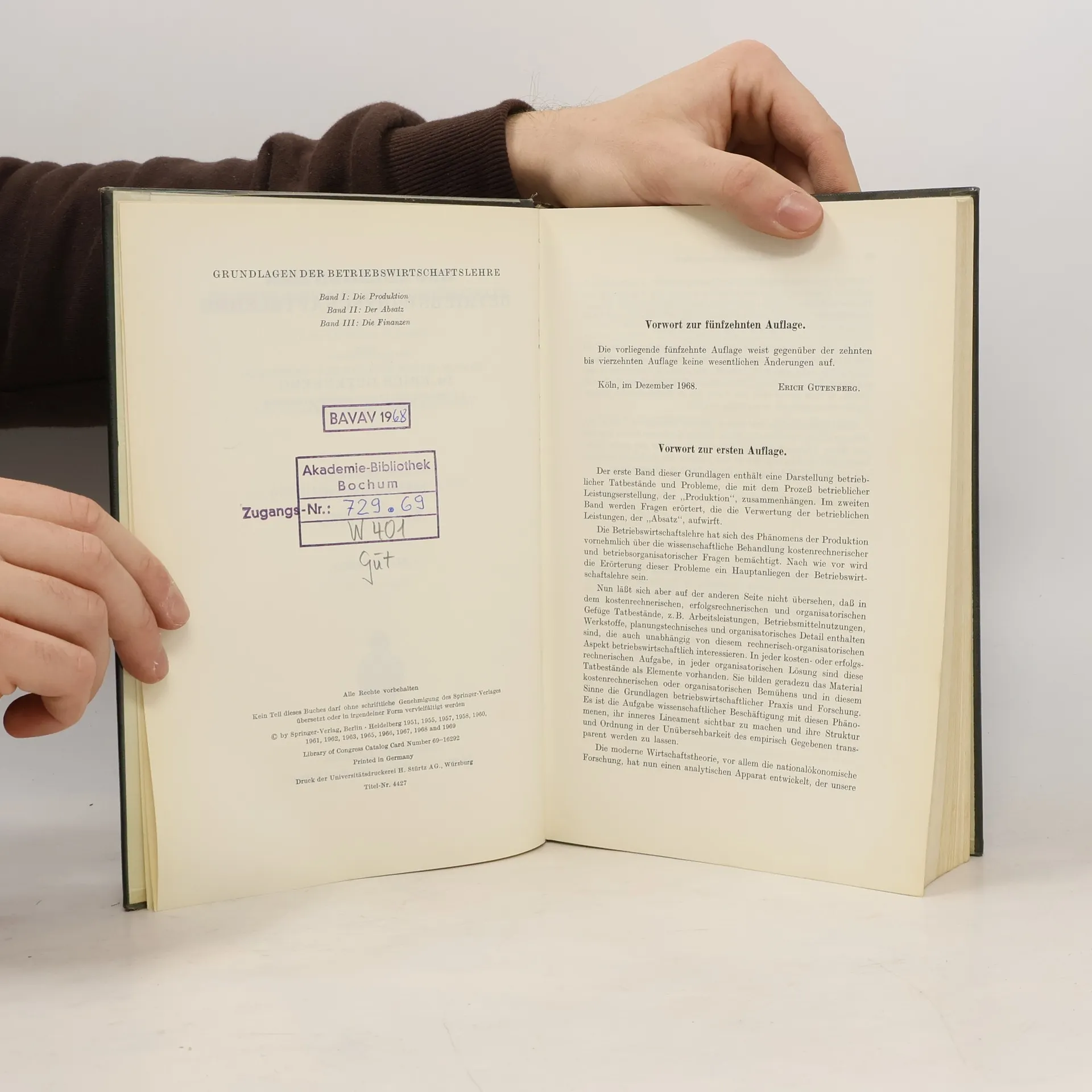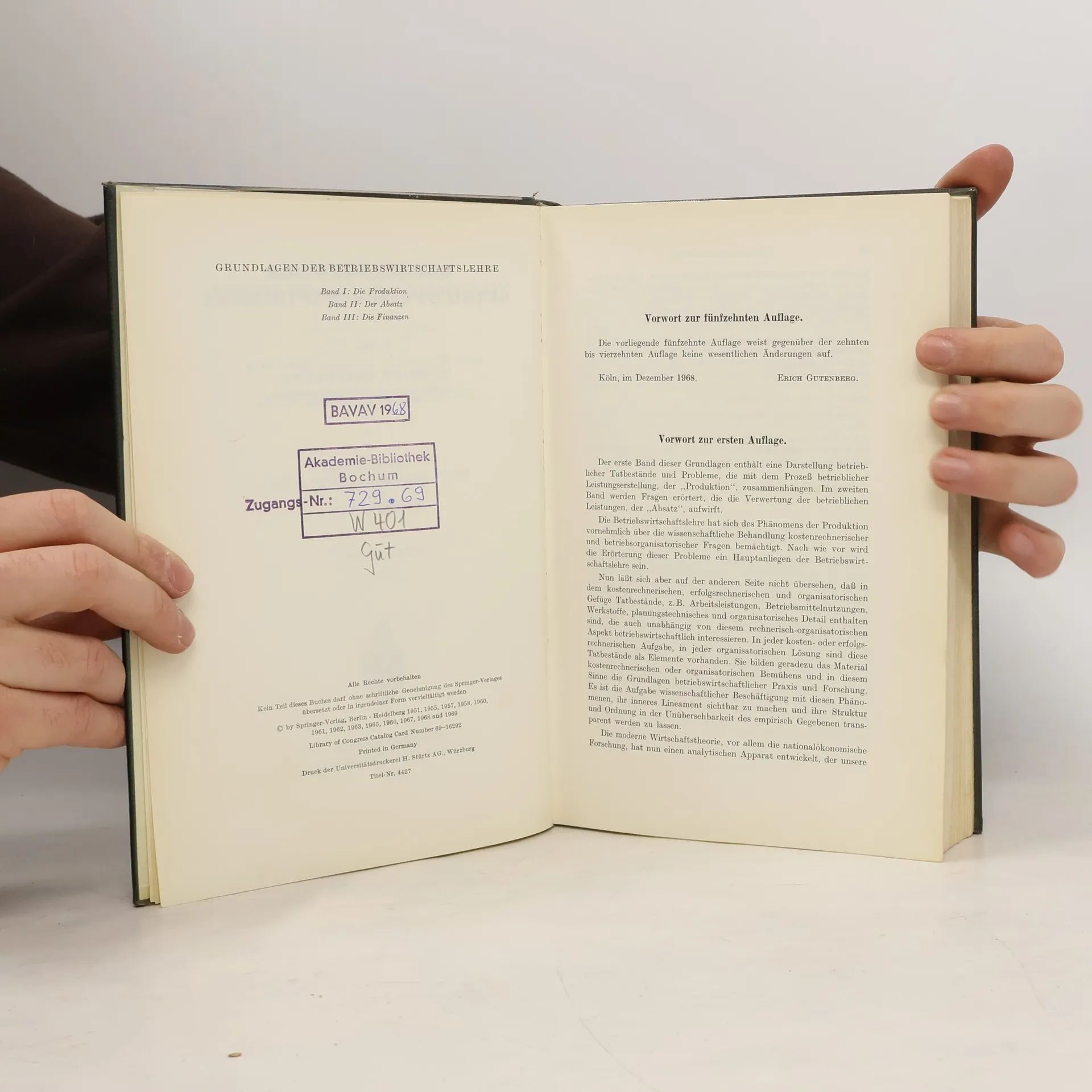 Enzyklopädie der Rechts- und Staatswissenschaft. Grundlagen der Betriebswirtschaftslehre 1. Die Produktion, Erich Gutenberg