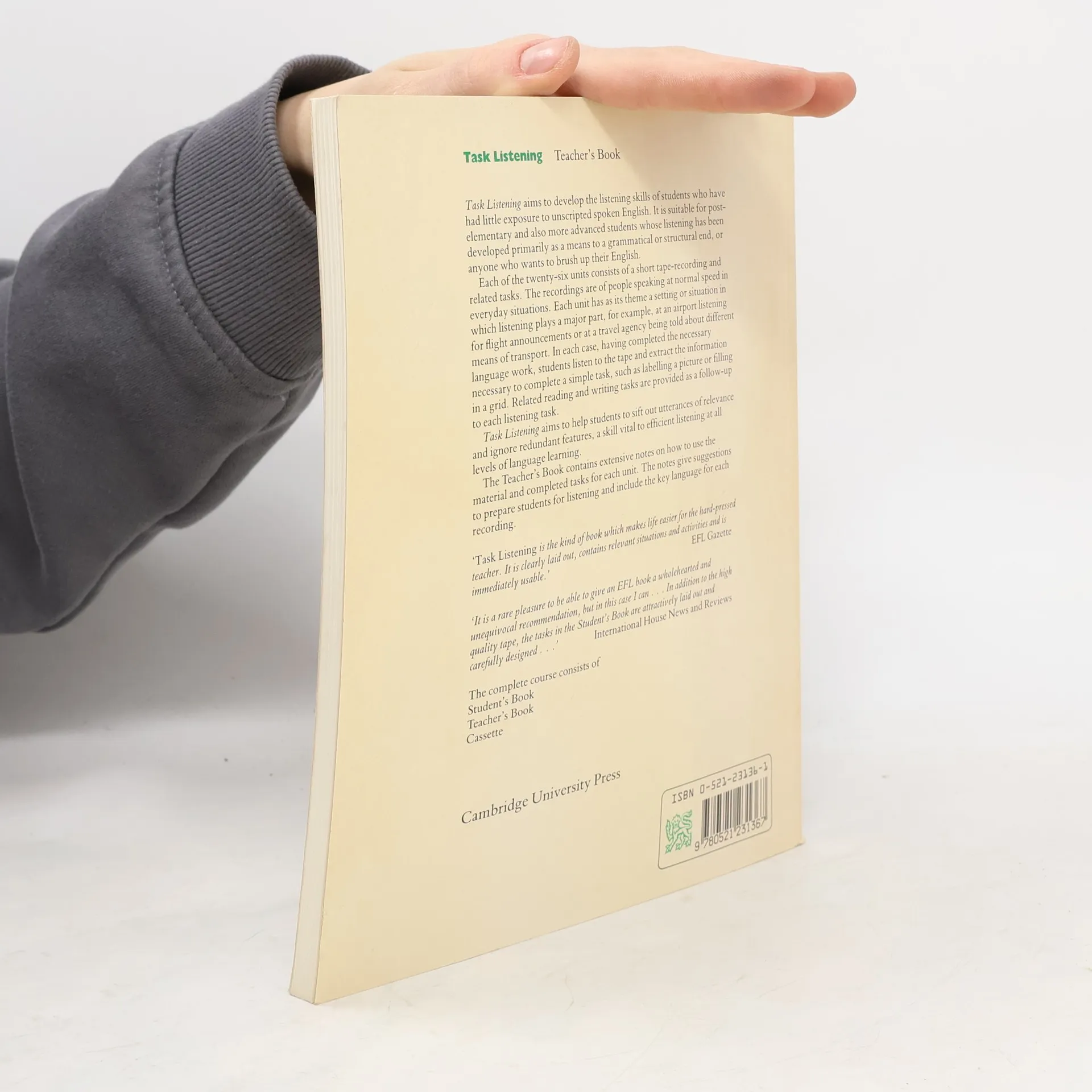 Listening activities for lower-intermediate and intermediate students. Task Listening aims to develop the listening skills of students who have had little exposure to authentic spoken English. Suitable for lower-intermediate and intermediate students, the book teaches how to sift out relevant information and ignore redundant features in spoken language - a skill vital to efficient listening at all levels of language learning. The Teacher's Book contains extensive notes on how to use the material and completed tasks for each unit. The notes include key language for each recording and suggestions on how to prepare students for listening.show more
