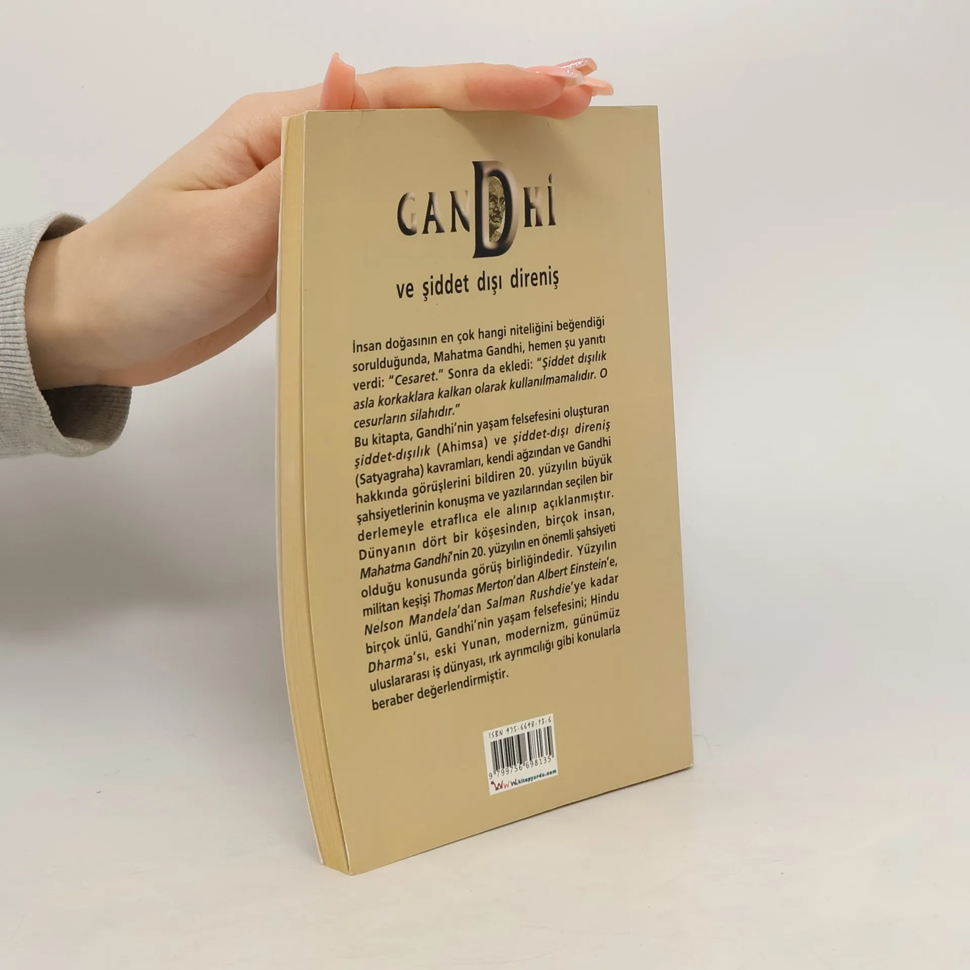 İnsan doğasının en çok hangi niteliğini beğendiği sorulduğunda, Mahatma Gandhi, hemen yanıtı verdi: "Cesaret." Sonra da ekledi: "Şiddet dışılık asla korkaklara kalkan olarak kullanılmamalıdır. O cesurların silahıdır." Bu kitapta, Gandhi'nin yaşam felsefesini oluşturan şiddet-dışılık (Ahimsa) ve şiddet-dışı direniş (Satyagraha) kavramları, kendi ağzından ve Gandhi hakkında görüşlerini bildiren 20. yüzyılın büyük şahsiyetlerinin konuşma ve yazılarından seçilen bir derlemeyle etraflıca ele alınıp açıklanmıştır. Dünyanın dört bir köşesinden, birçok insan, Mahatma Gandhi'nin 20. yüzyılın en önemli şahsiyeti olduğu konusunda görüş birliğindedir. Yüzyılın militan keşişi Thomas Merton'dan Albert Einstein'e, Nelson Mandela'dan Salman Rushdie'ye kadar birçok ünlü, Gandhi'nin yaşam felsefesini; Hindu Dharma'sı, eski Yunan, modernizm, günümüz uluslararası iş dünyası, ırk ayrımcılığı gibi konularla beraber değerlendirmiştir.