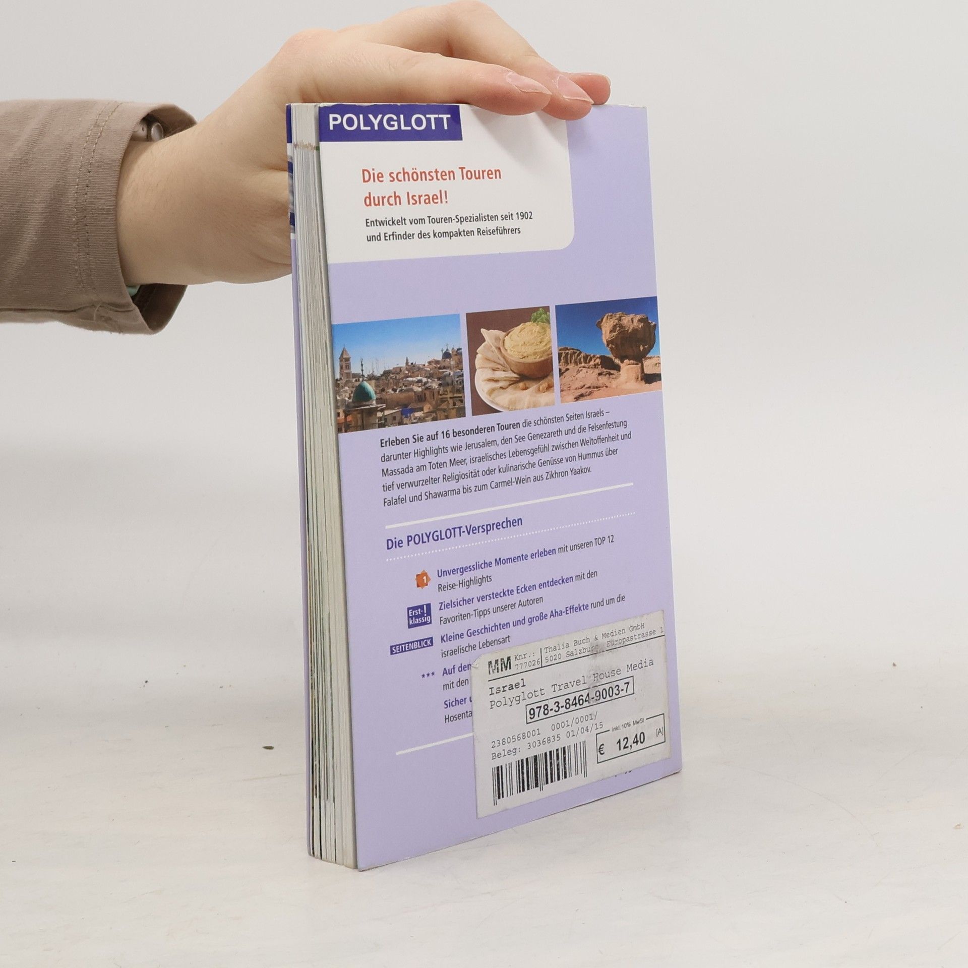 Der benutzerfreundliche Polyglott mit innovativem Tourenkonzept führt Sie zu den schönsten Reisezielen im faszinierenden Israel. Entdecken Sie Tel Aviv, die Metropole voller Kultur und Unterhaltung, attraktive Badeorte an der Mittelmeerküste, die kontrastreiche Region zwischen dem biblischen Galiläa und der palästinensischen Westbank sowie die heilige Stadt Jerusalem für Moslems, Juden und Christen. Der Reiseführer bietet 16 Top-Touren, wie die Spurensuche Jesu, vom See Genezareth zum Toten Meer oder vom Damaskustor zum Dungtor in Jerusalem. Die Reiseplanung gibt einen Überblick über die Regionen und präsentiert die schönsten Touren mit Sehenswürdigkeiten, Hotel- und Restauranttipps. Der Abschnitt über Land und Leute informiert über die Geschichte Israels, Natur, Kunst, Kultur sowie interessante Feste und Veranstaltungen. Für ein intensives Reiseerlebnis sorgen Rubriken wie Erstklassig!, Special oder Seitenblicke, die sich mit bedeutenden Sakralbauten, historischen Hotels oder Bauhausarchitektur in Israel befassen. Die Top-Touren bieten vielfältige Erlebnisse, von Haifa nach Nazareth, durch den Negev bis zum Roten Meer und von Jerusalem zum Toten Meer, wo üppige Natur und biblische Stätten auf Sie warten.