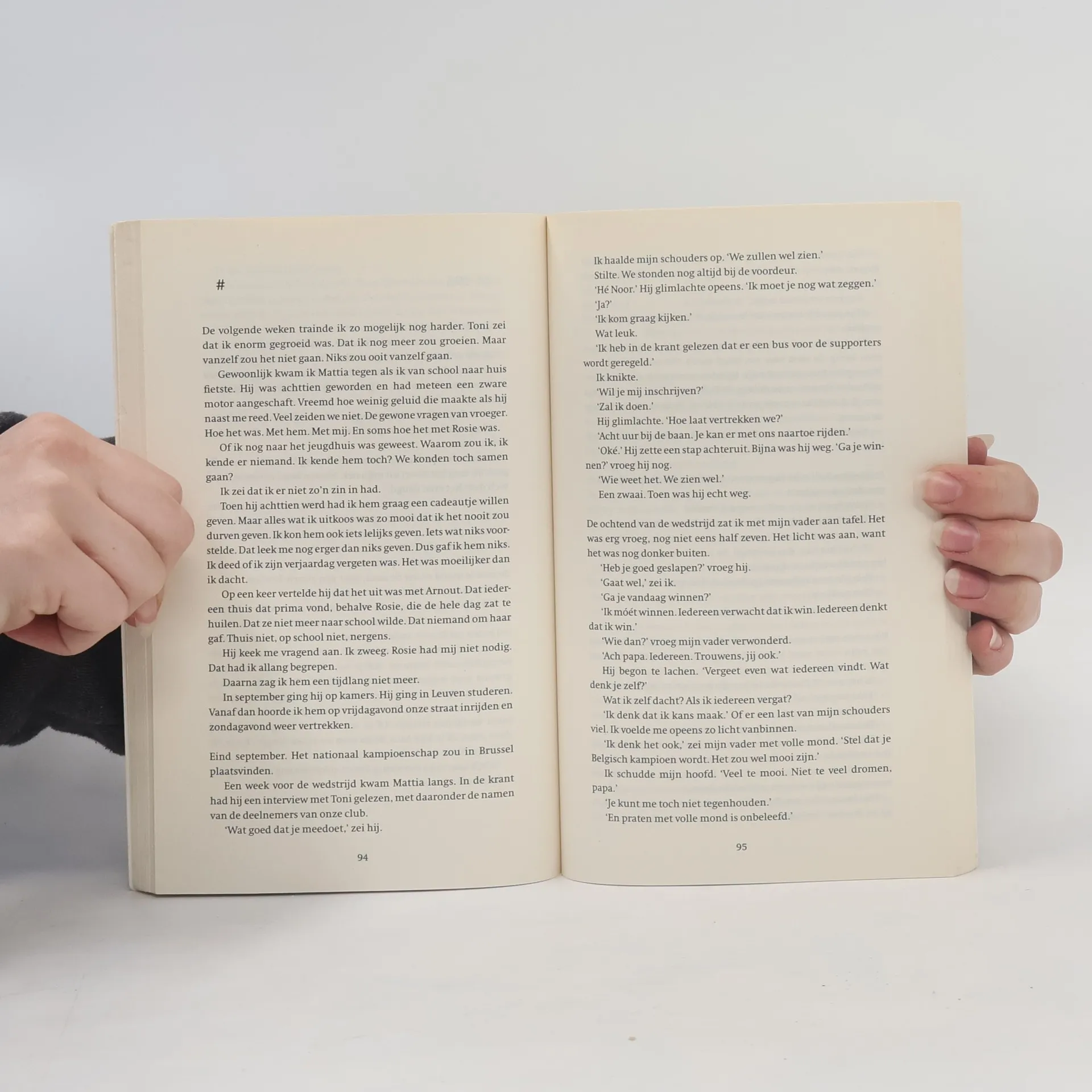 Terwijl een 18-jarig meisje voor het eerst de marathon loopt, denkt ze terug aan de vriendschappen, verliefdheden en de dood van een vriendin uit haar puberteit. Vanaf ca. 15 jaar.