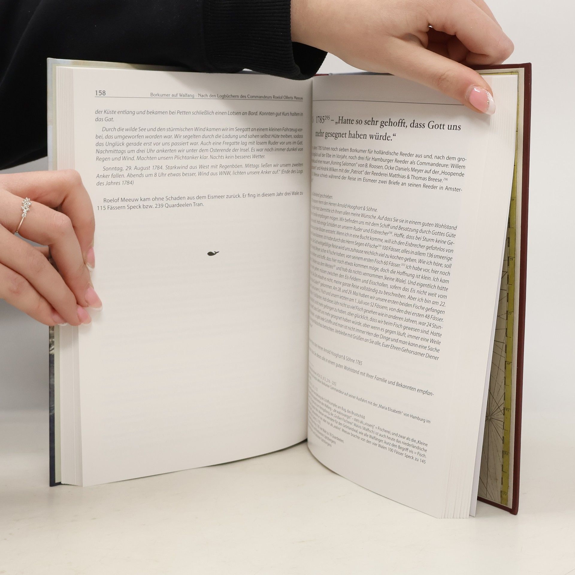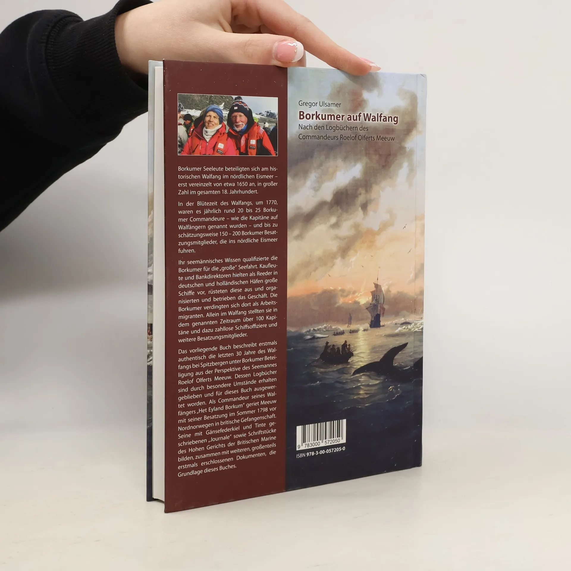 Borkumer Seeleute waren aktiv am historischen Walfang im nördlichen Eismeer beteiligt, zunächst vereinzelt ab etwa 1650 und dann in großer Zahl im 18. Jahrhundert. Um 1770 fuhren jährlich rund 20 bis 25 Borkumer Commandeure und bis zu 200 Besatzungsmitglieder ins nördliche Eismeer. Ihr maritimes Wissen qualifizierte sie für die große Seefahrt. Kaufleute und Bankdirektoren agierten als Reeder in deutschen und holländischen Häfen, wo sie große Schiffe ausstatteten und das Geschäft organisierten. Die Borkumer arbeiteten dort als Migranten. In dieser Zeit stellten sie über 100 Kapitäne sowie zahlreiche Offiziere und Besatzungsmitglieder im Walfang. Das Buch beleuchtet erstmals authentisch die letzten 30 Jahre des Walfangs bei Spitzbergen aus der Perspektive des Seemannes Roelof Olferts Meeuw. Seine Logbücher, die durch besondere Umstände erhalten blieben, wurden für diese Arbeit ausgewertet. Als Commandeur seines Walfängers „Het Eyland Borkum“ geriet Meeuw 1798 vor Nordnorwegen in britische Gefangenschaft. Seine handschriftlichen „Journale“ sowie Dokumente des Britischen Marinegerichts und weitere Primärquellen bilden die Grundlage dieser Erzählung.