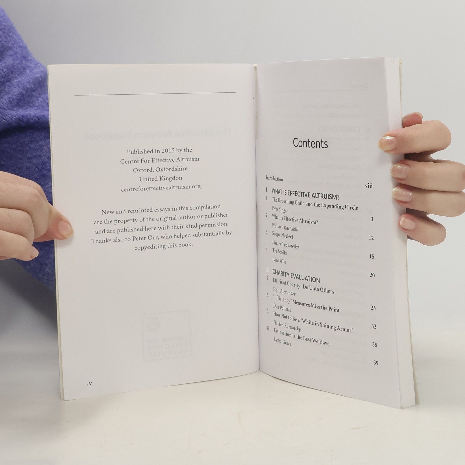 This is the first edition of The Effective Altruism Handbook. It was entirely revised in 2018, see: https://www.goodreads.com/book/show/4...The Effective Altruism Handbook is a compilation of essays about how do more good with limited resources. It presents much of the intellectual progress of the effective altruism movement, a group dedicated to discovering and carrying out the most effective philanthropic interventions. It features a range of problems that we ask when considering how to have an impact, and many that we don't think to ask at all, across areas such as charity evaluation, career choice and cause selection. Its contributors include Professors Peter Singer and William MacAskill, who provide the introduction, and the leaders of a wide range of organisations, who discuss how they seek to put this movement's ideas into practice.