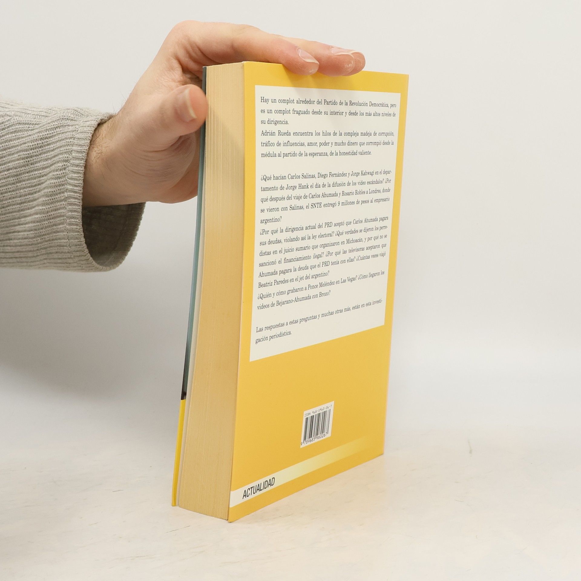 Hay un complot alrededor del Partido de la Revolucion Democratica, pero es un complot fraguado desde su interior y desde los mas altos niveles de su dirigencia. Adrian Rueda encuentra los hios de la compleja madeja de corruption, traficó de influencias, amor, poder y mucho dinero que corrompió desde la medula al partido de la esperanza, de la honestidad valiente. Que hacian Carlos Salinas, Diego Fernandez y Jorge kahwagi en el departamento de Jorge Hank el dia de la difusion de los video escandalos? Por que después del viaje de Carlos Ahumada y Rosario Robles a londres, donde se vieron con Salinas, el SNTE entrego 9 milions de pesos al empresario argentino? Por que la dirigencia actual del PRD acepto que Carlos Ahumada pagara sus deudes, violando asi la ley electoral? Que verdades se dijeron los perredistas en el juicio sumario que organizaron en Michoacan, y por que no se sanciono el financiamiento ilegal? Por que las televisoras aceptaron que Ahumada pagara la deuda que el PRD tenia con ellas? Cuantas veces viajo Beatriz Paredes en el jet del argentino? Quien y como grabaron a Ponce Melendez en Las Vegas? Como llegaron los videos de Bejarano con Brozo? Las respuestas a estas preguntas y muchas otras mas, esta en esta investigación periodística --- from book's back cover.