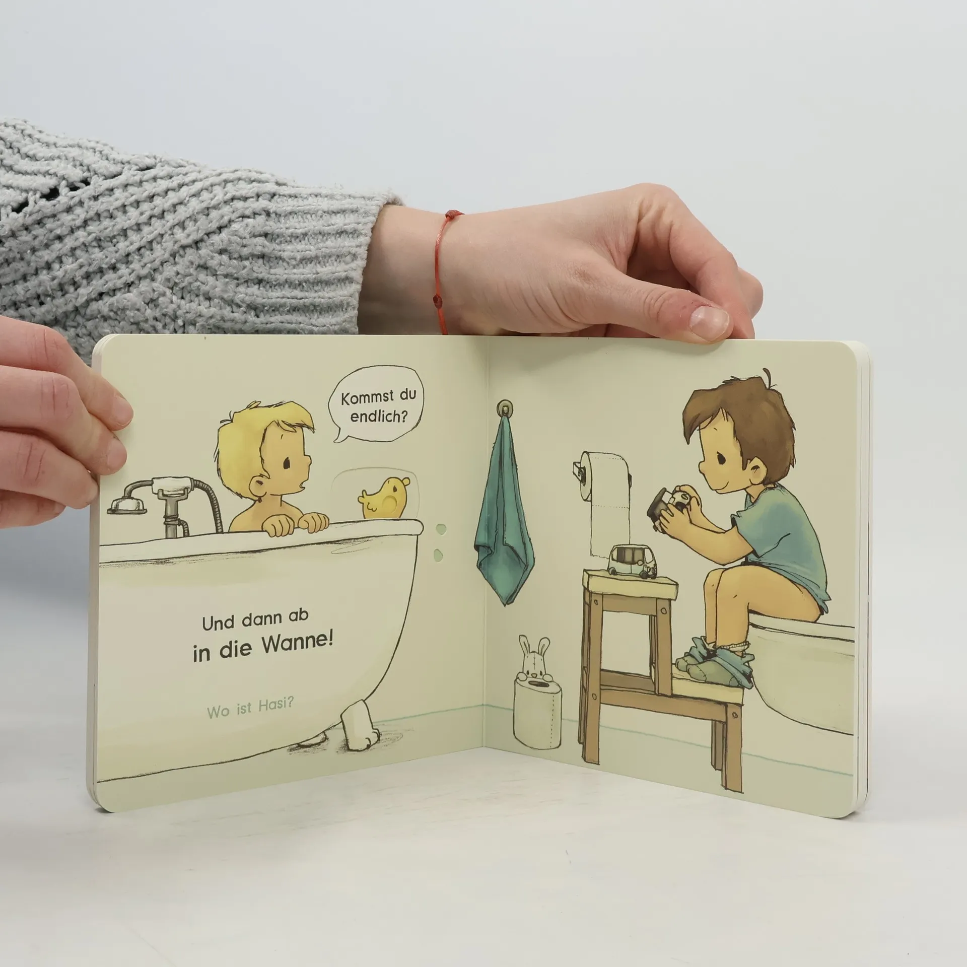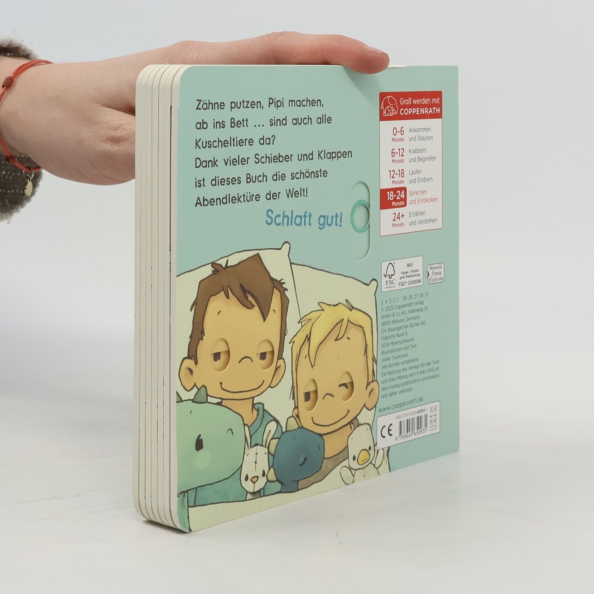 „Zähne putzen, Pipi machen, ab ins Bett … Sind auch alle Kuscheltiere da?“ – Ein interaktives Pappbilderbuch für das perfekte Abendritual! Interaktive Elemente: Klappen und Schieber auf jeder Seite Ideale Abendlektüre: Für Kinder ab 18 Monate Mitmachkonzept: Spielerisch die Welt entdecken und Hasi suchen Liebevoll erzählt und illustriert von Joëlle Tourlonias Perfekt zum gemeinsamen Vorlesen Dieses zauberhafte Mitmachbuch lädt die Kleinsten dazu ein, ihre Welt spielerisch zu entdecken. Auf jeder Seite erkennen sie viele Szenen aus ihrem Alltag wieder und dank vieler Schieber und Klappen laden sie zum Nachspielen ein. Perfekt zum Vorlesen, Spielen und gemeinsamen Betrachten. Und wenn Mama und Papa mal zu müde zum Vorlesen sind, können kleine Leserinnen und Leser selbst aktiv werden und auf jeder Seite nach Hasi suchen.