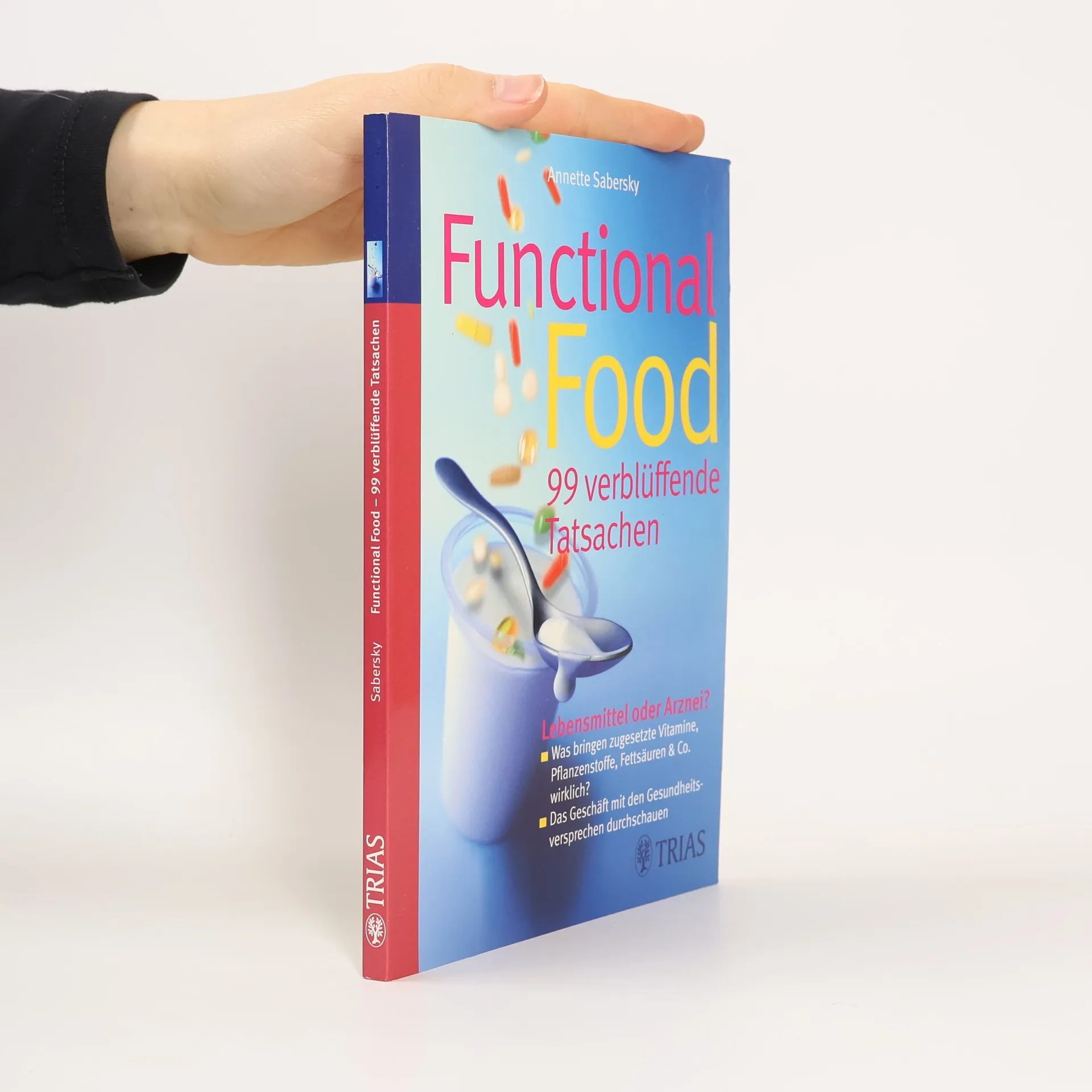 „Dieser Joghurt stärkt Ihr Immunsystem“. So liest man in der Werbung. Doch stimmt auch, was „Functional Food“ verspricht? Dieses Buch dient dem Leser als Orientierungshilfe. Zum einen erklärt es, was Vitamine, Mineralstoffe, Fettsäuren, Pflanzenstoffe, lebende Bakterienkulturen etc. wirklich können. Mehr noch: Es zeigt auf, woran man die Ernsthaftigkeit von „wissenschaftlichen Studien“ erkennen kann. Außerdem wird das Ernährungswissen auf den neuesten Stand gebracht. So erfährt der Leser, wie der tatsächliche Vitaminbedarf durch normales Essen abgedeckt wird, wo ergänzt werden muss und welche Präparate sinnvoll sind. Annette Sabersky ist Ernährungswissenschaftlerin. Als Journalistin schreibt sie für zahlreiche Publikumszeitschriften zu ihrem Schwerpunktthema „Ernährung und Diät“. Sie ist zudem bekannt als Autorin zahlreicher Sachbücher u. a. bei TRIAS „Diät! 99 verblüffende Tatsachen“.