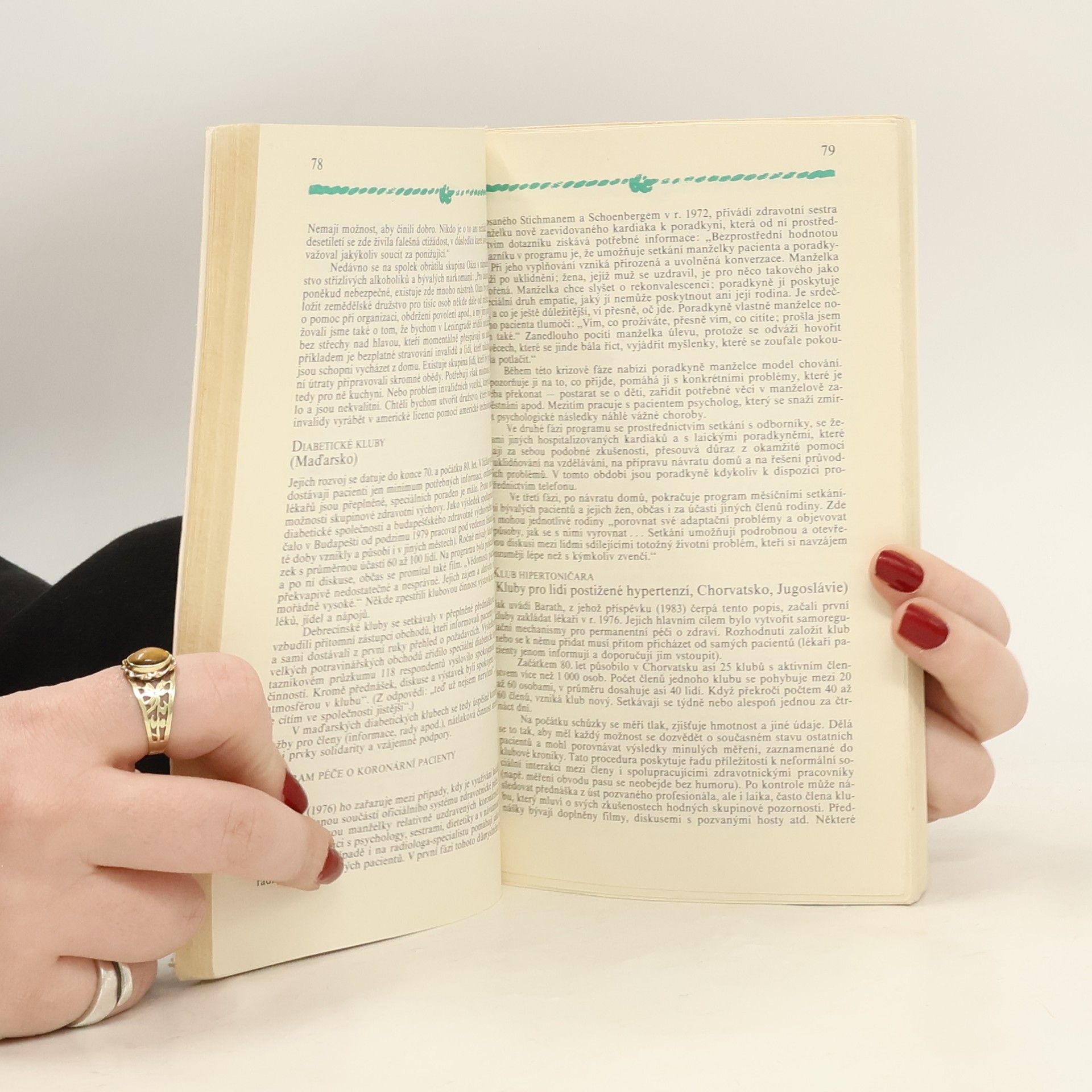 Kniha slovenského sociologa pojednává o významném jevu poslední doby - o žádoucí účasti veřejnosti na péči o zdraví. Jedná se svépomocné a pacientské skupiny, kluby, které v kolektivu stejně postižených se snaží najít psychickou i terapeutistickou podporu a řešení. Jedná se o kluby protialkoholní a drogové, i ostatních závislostí. Autor popisuje psychologické postupy a přístupy a také vysledky, kterými bylo dosaženo význačných úspěchů v zahraničí.