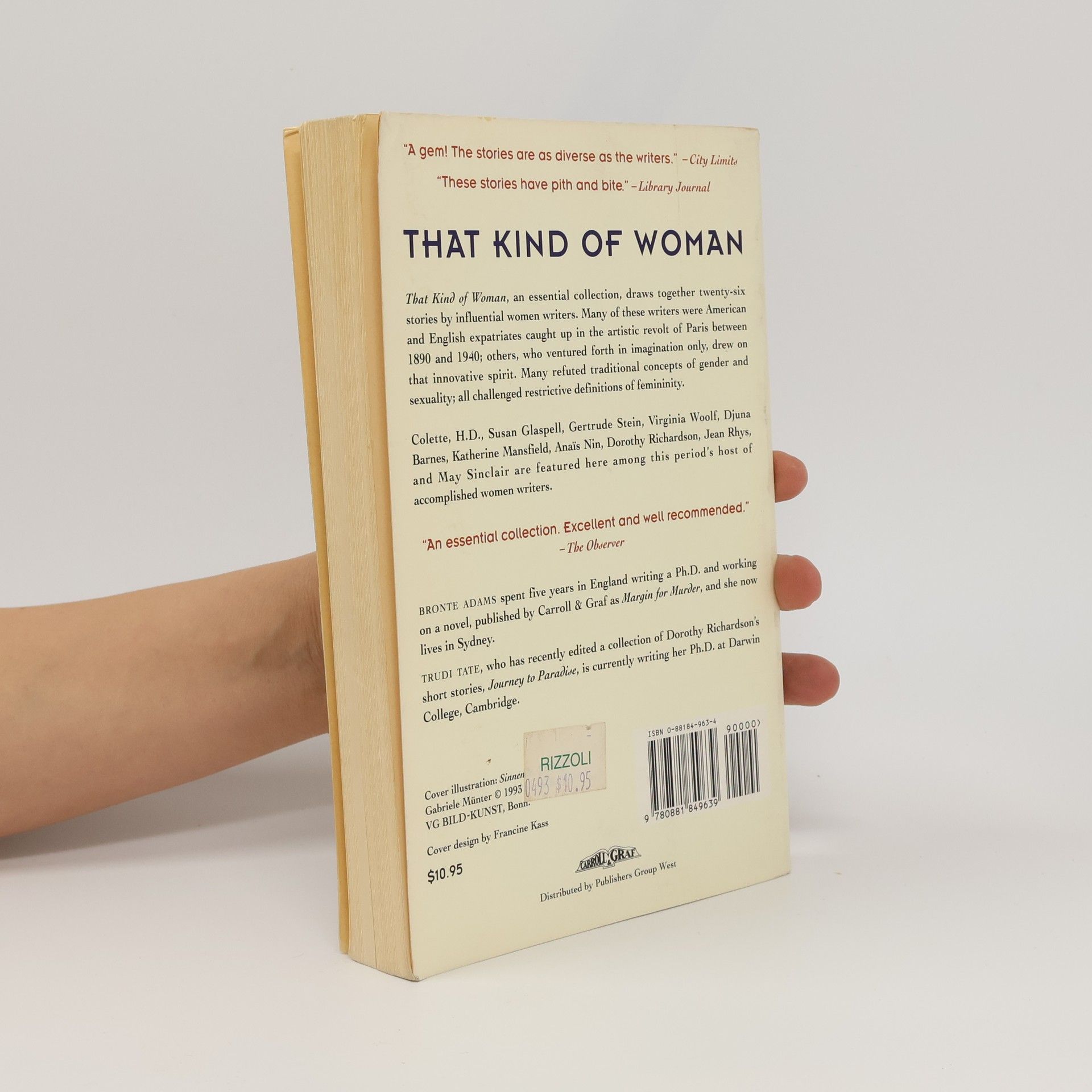 This essential collection, the first of its kind, draws together twenty-six stories by vital women writers. Here are stories written by the famous and by those whose names are less well known; recluses and extroverts; the rich and the impoverished; novelists and poets; heterosexuals, bisexuals, and lesbians. Many were American and English expatriates caught up in the artistic revolt of Paris between 1890 and 1940; others, who ventured forth in imagination only, drew on its innovative spirit. Many refuted traditional concepts of gender and sexuality; all challenged restrictive definitions of femininity. Colette, H. D., Susan Glaspell, Gertrude Stein, Virginia Woolf, Djuna Barnes, Katherine Mansfield, Anais Nin, Dorothy Richardson, Jean Rhys, and May Sinclair number among this period's host of accomplished women writers. A woman becomes obsessed by a life-size doll and rescues the memory of its original model from neglect; another keeps an array of Parisian gowns under lock and key rather than join the masquerade of fashion; two housewives use their attention to domestic detail to detect--and shield--a murderer. Here are writers who cast aside conventions. Rebellious, talented, provocative, they parade their tales of those who take life on their own terms--you know, that kind of woman.
