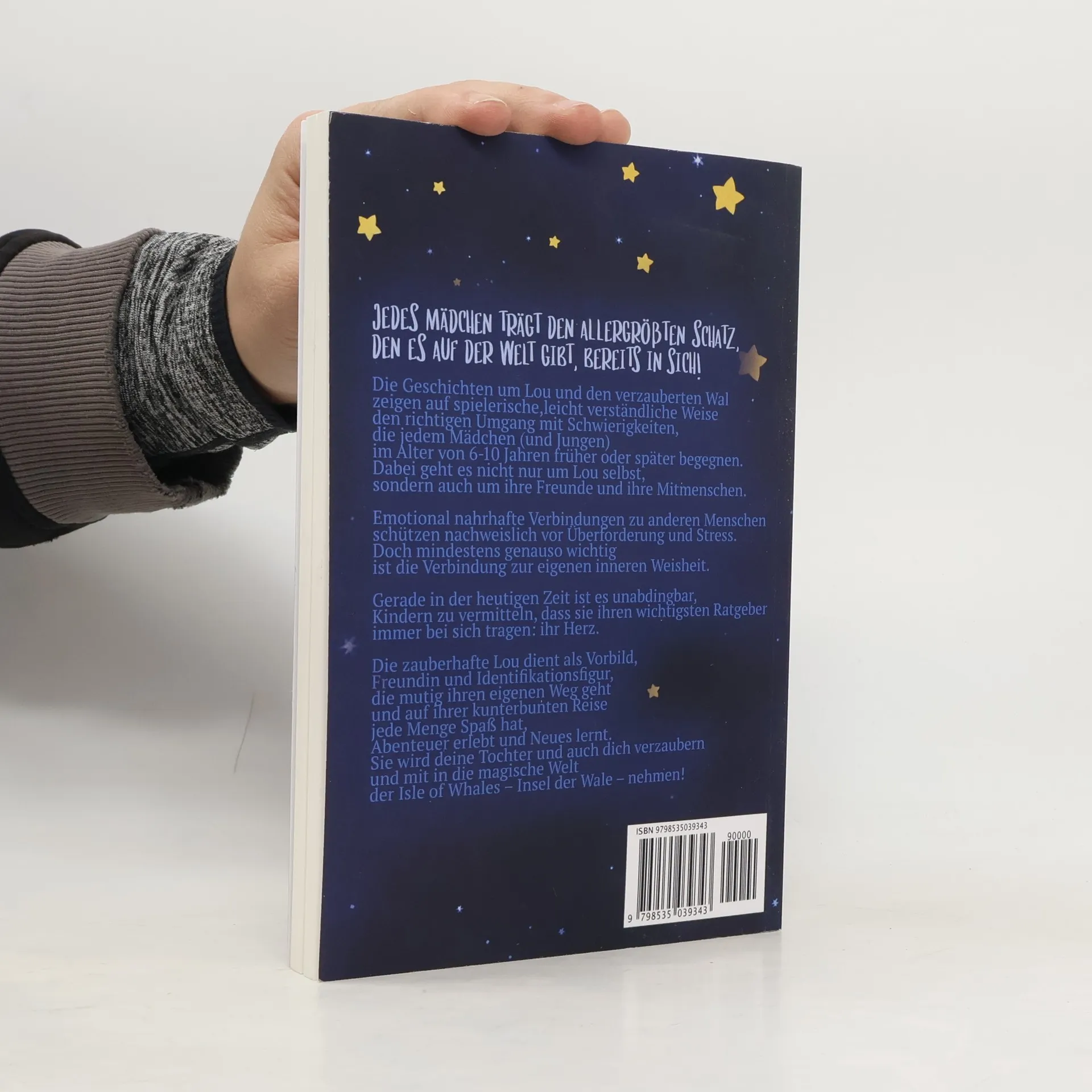 Jedes Kind trägt den allergrößten Schatz, den es auf der Welt gibt, bereits in sich!* Format, Schriftart und Schriftgröße wurden geändert*Fantasiewelten sind ein wissenschaftlich belegter Bonus für die kognitive Entwicklung von Kindern. Neueste Forschungserkenntnisse bestätigen, dass sich Kinder Wissen für das echte Leben sehr viel besser aneignen können, wenn es in Fantasiegeschichten integriert ist! In Märchen, Fabeln und Sagen geht es um Freundschaft, Magie und darum, einen ganz besonderen Schatz zu finden, der außergewöhnliche Kräfte und die größte Macht auf der ganzen Welt hat.Die Geschichten um Lou und den verzauberten Wal zeigen auf spielerische , leicht verständliche Weise den richtigen Umgang mit Schwierigkeiten , die jedem Kind im Alter von 6–10 Jahren früher oder später begegnen. Dabei geht es nicht nur um Lou selbst, sondern auch um ihre Freunde und ihre Mitmenschen. Emotional nahrhafte Verbindungen zu anderen Menschen schützen nachweislich vor Überforderung und Stress. Doch mindestens genauso wichtig ist die Verbindung zur eigenen inneren Weisheit . Gerade in der heutigen Zeit ist es unabdingbar, Kindern zu vermitteln, dass sie ihren wichtigsten Ratgeber immer bei sich ihr Herz .Die zauberhafte Lou dient als Vorbild , Freundin und Identifikationsfigur , die mutig ihren eigenen Weg geht und auf ihrer kunterbunten Reise in Schottland jede Menge Spaß hat, Abenteuer erlebt und Neues lernt . Sie wird dein Kind und auch dich verzaubern und mit in die magische Welt der Isle of Whales – Insel der Wale – nehmen!Wie die Mutmachgeschichten & die Herzensmagie deinem Kind - Es lernt, empathisch zu sein und sich in andere Personen hineinversetzen zu können.- Es wird selbstsicher und kann sich realistisch einschätzen.- Es fühlt sich geschätzt und wertvoll .- Es lernt eine effektive Art der Stressbewältigung .- Es lernt, worauf es ankommt, um ein erfülltes und glückliches Leben zu leben.- Es stärkt sein allgemeines Wohlbefinden .- Es lernt, mit Emotionen im Alltag besser umzugehen.Dieses Buch ist geeignet - Kinderbuch für Mädchen und Jungen im Alter von 5, 6, 7, 8 und 9 Jahren- Einstieg für Erstleser- Wunderbare Geschenkidee für Mädchen und Jungen- Vorlesebuch und Gutenachtgeschichte- Willkommene Abwechslung zu allen herkömmlichen Kinderbüchern Sehr viele Bilder zum Anschauen und Ausmalen und große Schrift für Erstleser! Lustige Walfakten + Herzensmeditation am Ende des Buches. 239 Taschenbuchseiten. Fantasievolle Mutmachgeschichten für Kinder bilden einen Anker in einer immer schnelleren Welt voller Anforderungen und Herausforderungen. Möchtest du deinem Kind zu mehr innerer Stärke , Widerstandsfähigkeit , Selbstvertrauen und einer angeregten Fantasie verhelfen? Dann sichere dir jetzt ein Exemplar mit einem einfachen Klick oben-rechts auf „ Jetzt kaufen “.
