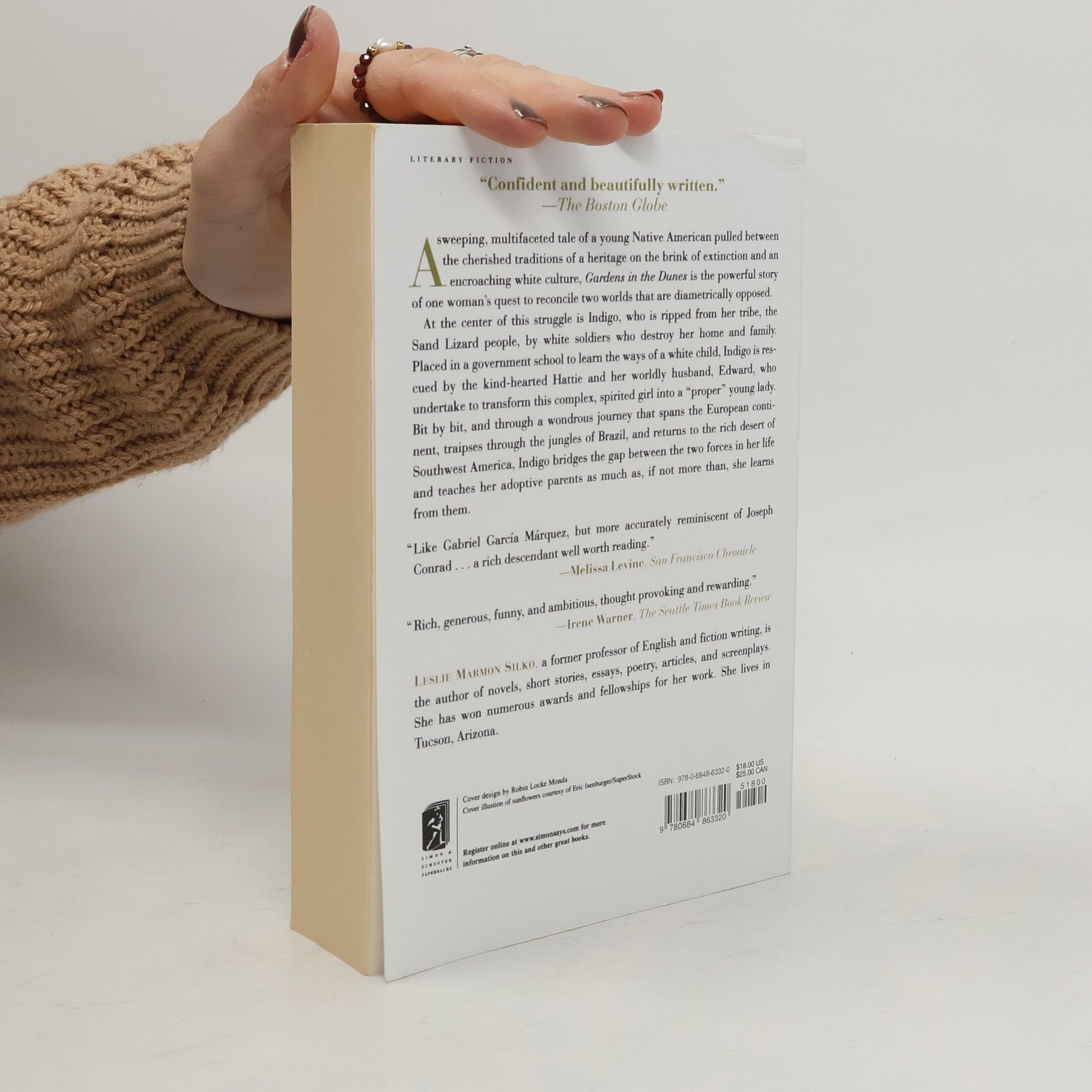 A sweeping, multifaceted tale of a young Native American pulled between the cherished traditions of a heritage on the brink of extinction and an encroaching white culture, Gardens in the Dunes is the powerful story of one woman’s quest to reconcile two worlds that are diametrically opposed.At the center of this struggle is Indigo, who is ripped from her tribe, the Sand Lizard people, by white soldiers who destroy her home and family. Placed in a government school to learn the ways of a white child, Indigo is rescued by the kind-hearted Hattie and her worldly husband, Edward, who undertake to transform this complex, spirited girl into a “proper” young lady. Bit by bit, and through a wondrous journey that spans the European continent, traipses through the jungles of Brazil, and returns to the rich desert of Southwest America, Indigo bridges the gap between the two forces in her life and teaches her adoptive parents as much as, if not more than, she learns from them.
