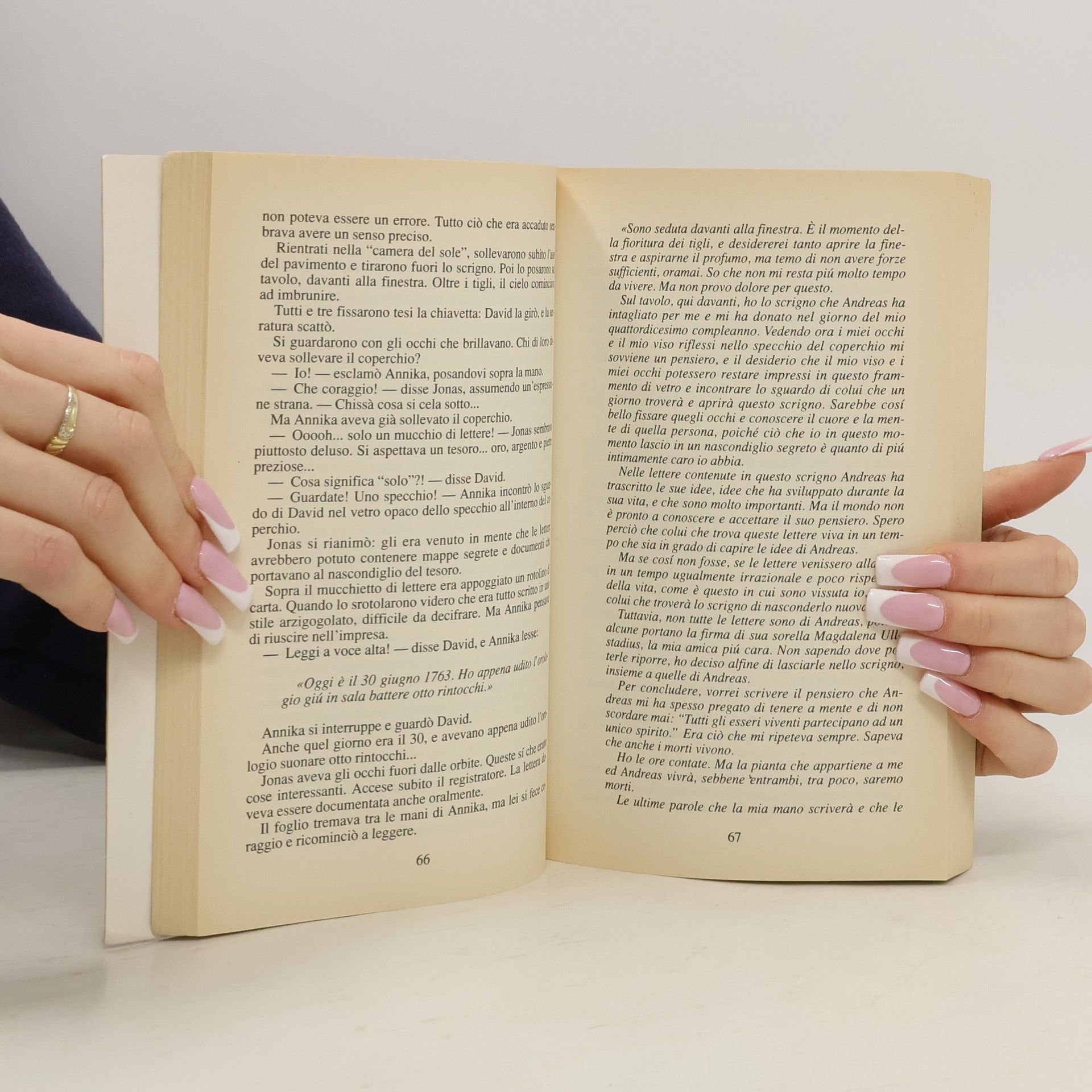 Un romanzo delicato e ricco di atmosfera, ambientato in Svezia. In un piccolo paesino, tre amici si offrono di andare ad annaffiare le piante nella tenuta di una signora del luogo. Un giorno in cui si sono attardati più del solito, i tre amici scoprono un cofanetto con delle lettere risalenti al 1700, che permettono loro di ricostruire una intricata ma tenera storia d'amore e di risolvere un insolito intreccio.