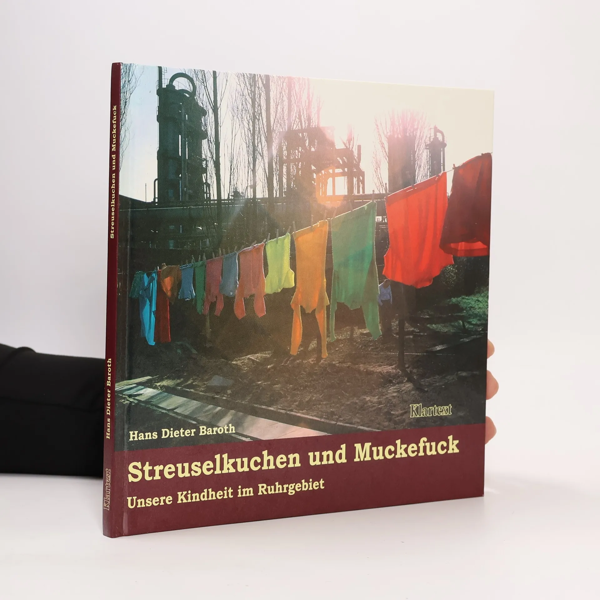 Kindheit im Revier ab Mitte des vergangenen Jahrhunderts war: Die Seltersbude als Mittelpunkt des Lebens, das Kino rangierte vor dem Fernsehen, Familienfeiern endeten im Streit. Deputatkohlen wurden mit dem Pferdewagen geliefert. In den 1960er Jahren verschwanden die Zossen aus dem Stadtbild. Auch die Haustiere wurden abgeschafft. Der Betrieb organisierte die ersten Urlaubsfahrten. Die Siedlungen hießen Kolonie, das Lebensmittelgeschäft Kolonialwarenladen. Kinder nannte man Blagen oder Kröten, der Hund hieß Rühr und die Katze Bolz. Wer über 30 Jahre alt ist, erkennt Facetten seiner eigenen Kindheit und Jugend in den Texten von Hans Dieter Baroth. Bis zu 40 Jahre alte Farbfotos aus dem Ruhrgebiet bereichern den Band. Von der Hütte Rheinhausen bis zur Zeche Radbod reicht das Spektrum der veröffentlichten Fotos. Für seine Romane aus dem Revier, darunter „Streuselkuchen in Ickern“, erhielt er den Literaturpreis Ruhrgebiet. Ein Kultbuch wurde „Jungens, Euch gehört der Himmel!“.